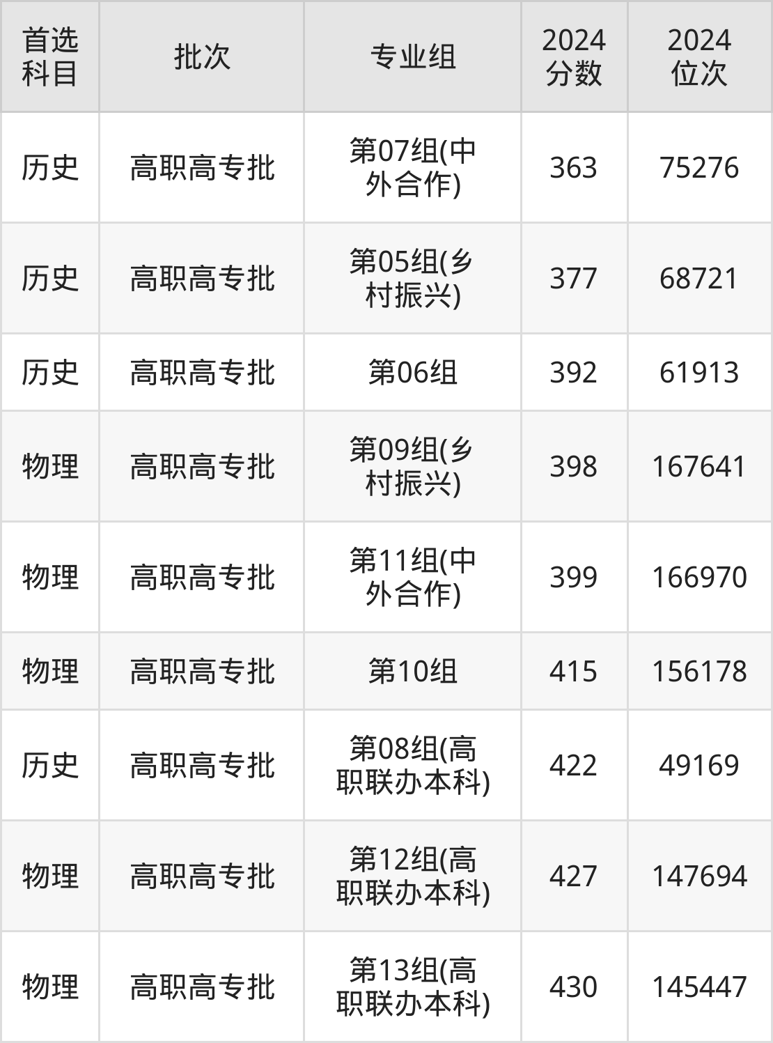2024年湖北交通职业技术学院在湖北省内专科批的录取分数线都在360分以上,在历史类的录取分数线在363分-422分之间;物理类的录取分数线在398分-430分之间。
