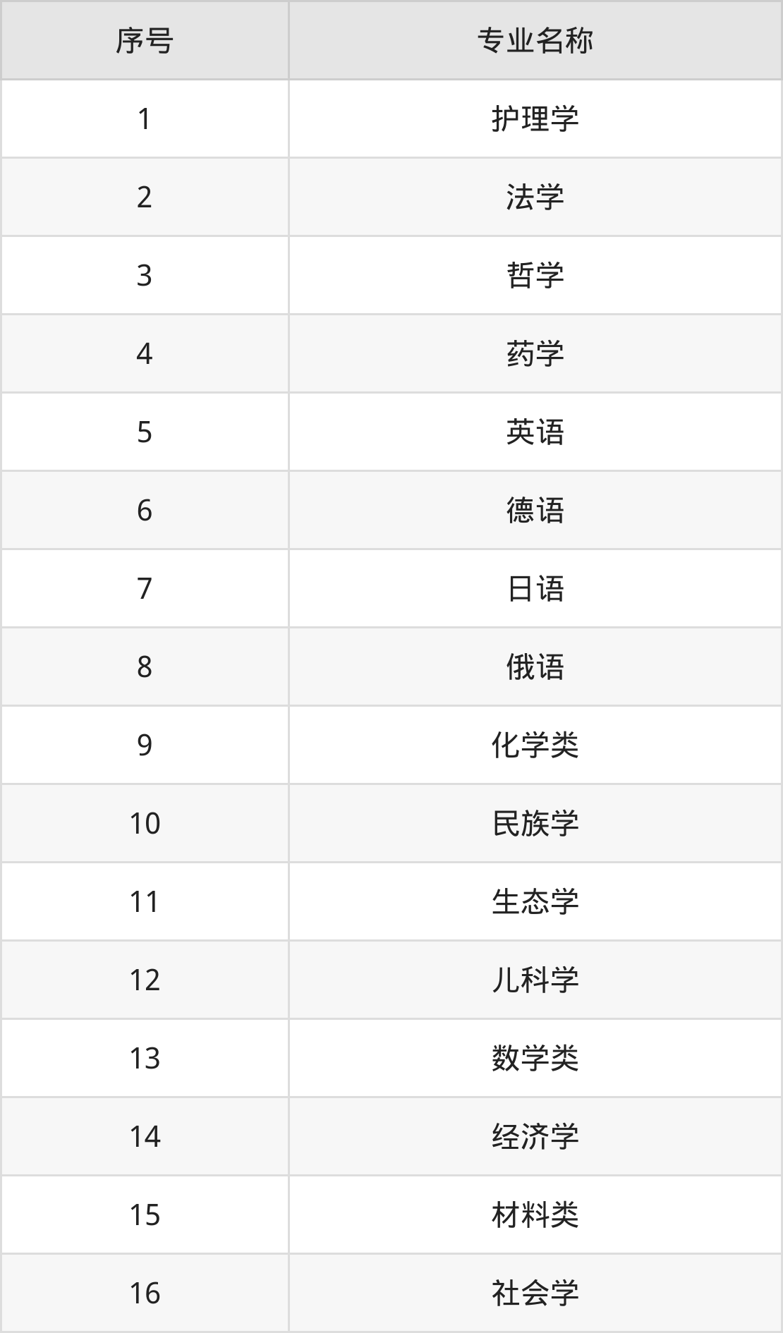 物理类(理科)本科招生专业:护理学、药学、哲学、英语、麻醉学、数学类、生态学、儿科学、社会学、材料类等。