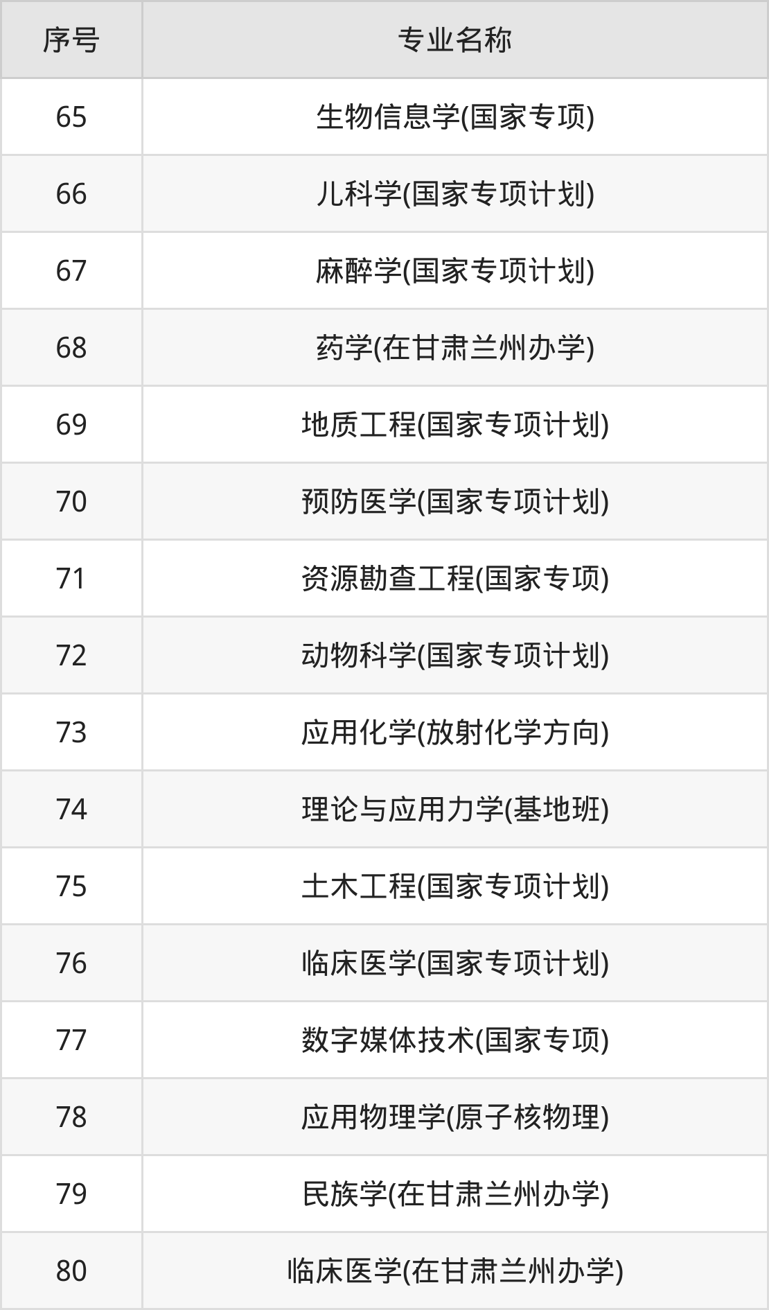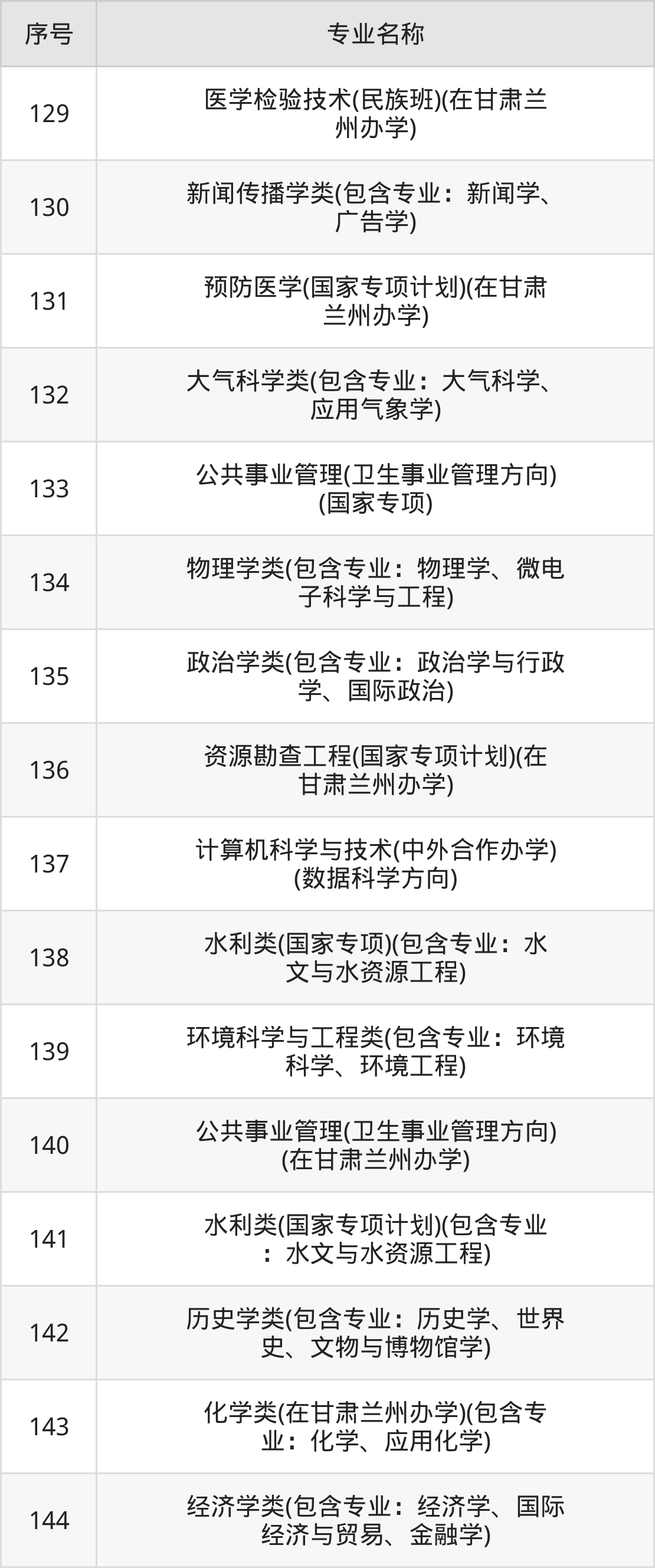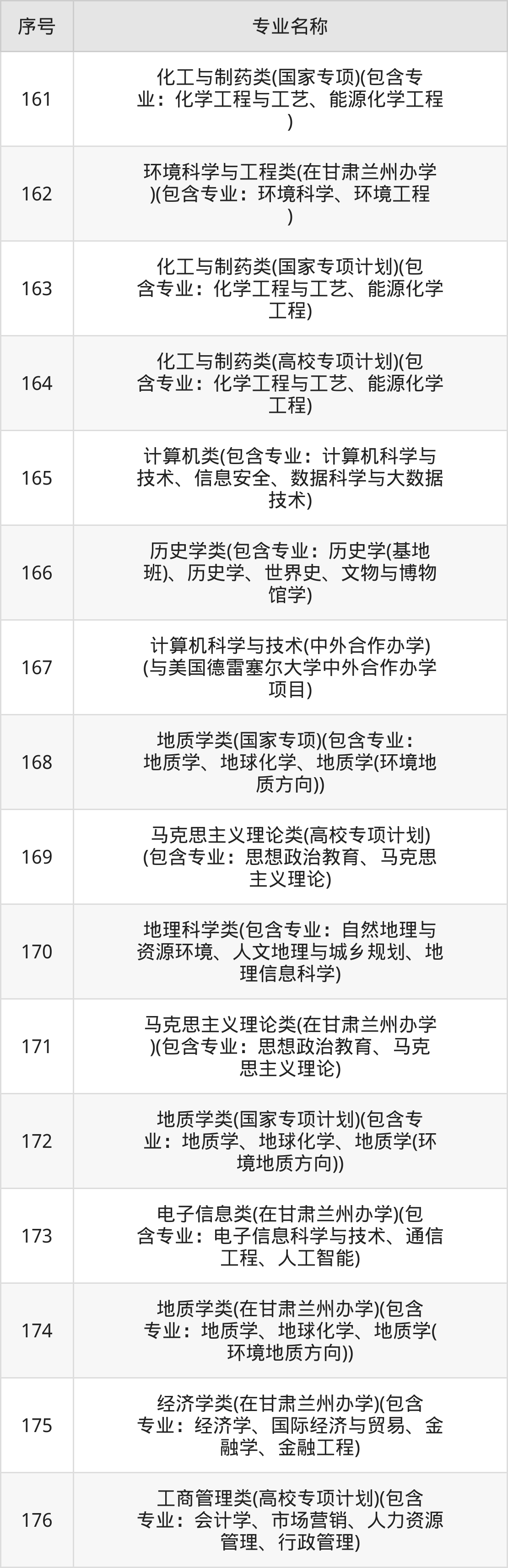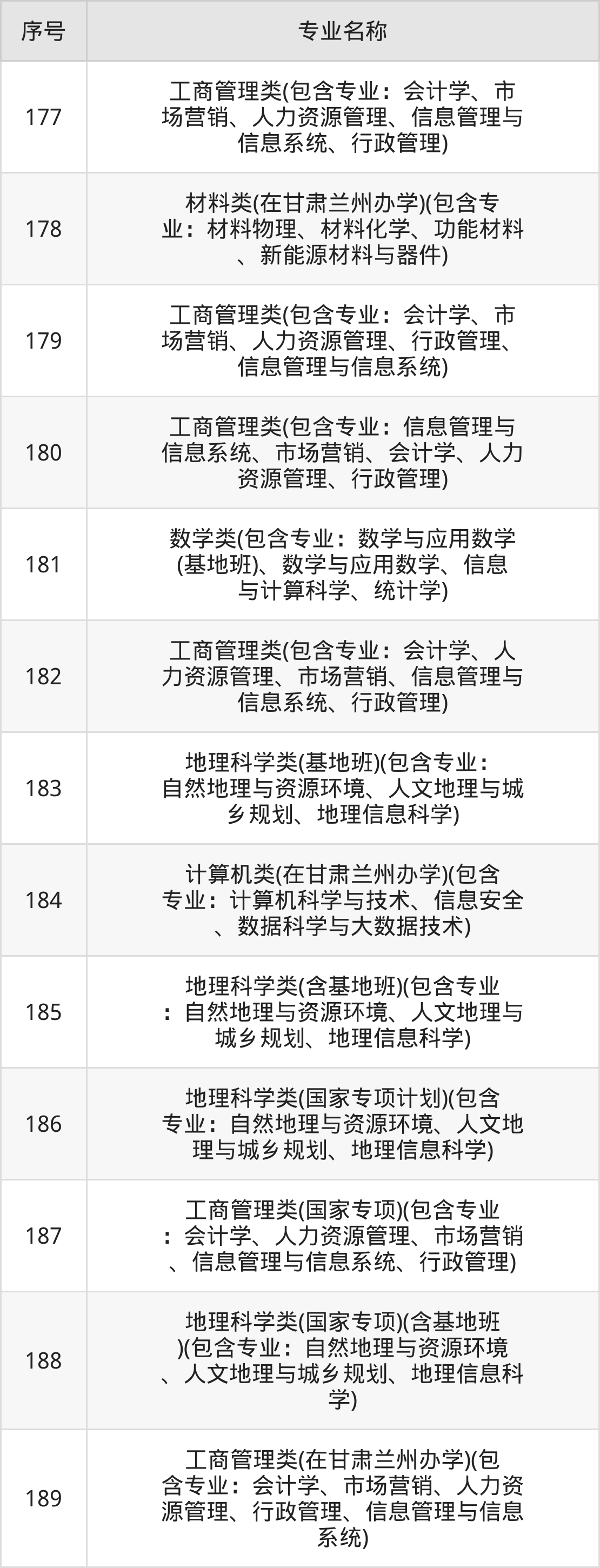 目前,兰州大学公布了2024年本科招生专业,共189个。