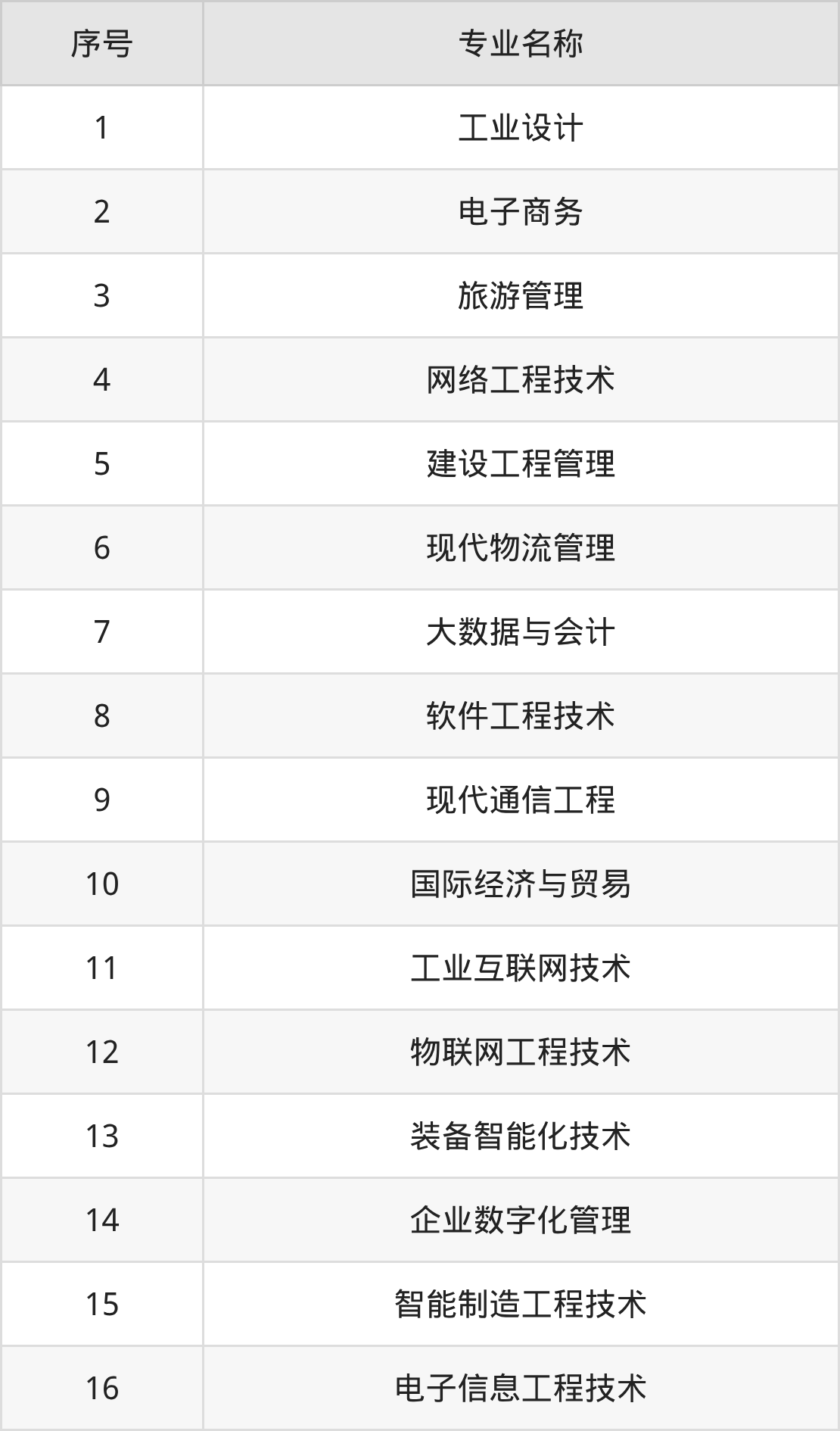 物理类(理科)本科招生专业:电子商务、工业设计、现代通信工程、现代物流管理、大数据与会计、软件工程技术、建设工程管理、网络工程技术、企业数字化管理、装备智能化技术等。
