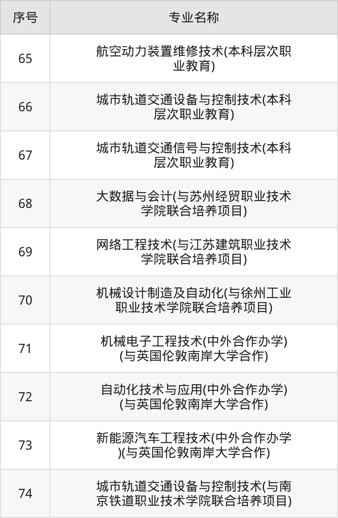 目前,南京工业职业技术大学公布了2025年本科招生专业,共74个。