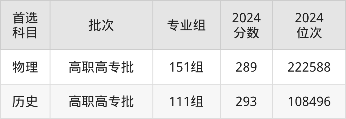 2024年广西现代职业技术学院在广西壮族自治区内专科批的录取分数线都在280分以上,在历史类的录取分数线为293分;物理类的录取分数线为289分。