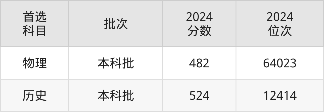 从2024年贵州警察学院在贵州省内的录取分数线来看,本科批录取分数线都在480分以上,录取分数线最高的是历史类,2024年最低分为524分;录取分数线最低的是物理类,2024年最低分为482分。