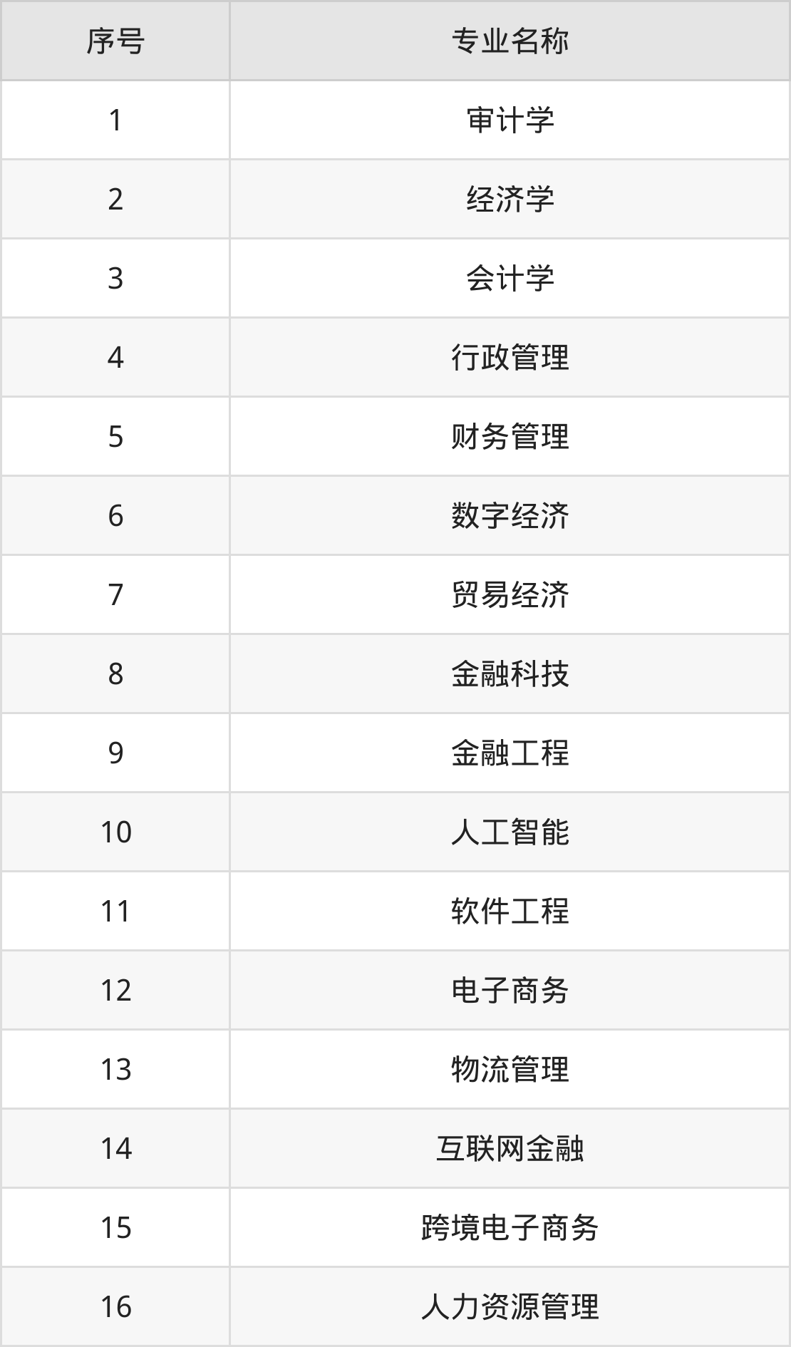物理类(理科)本科招生专业:经济学、会计学、审计学、数字经济、人工智能、软件工程、财务管理、金融工程、电子商务、金融科技等。