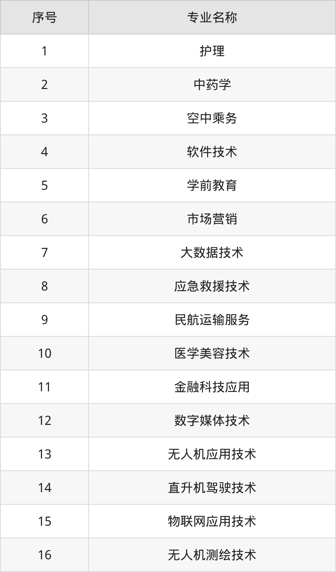 目前,天府新区通用航空职业学院公布了2024年专科招生专业,共33个。