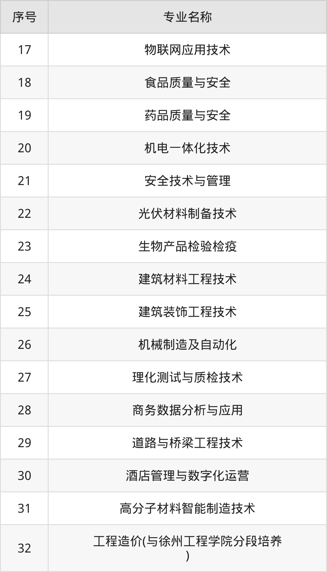 目前,常州工程职业技术学院公布了2024年专科招生专业,共32个。