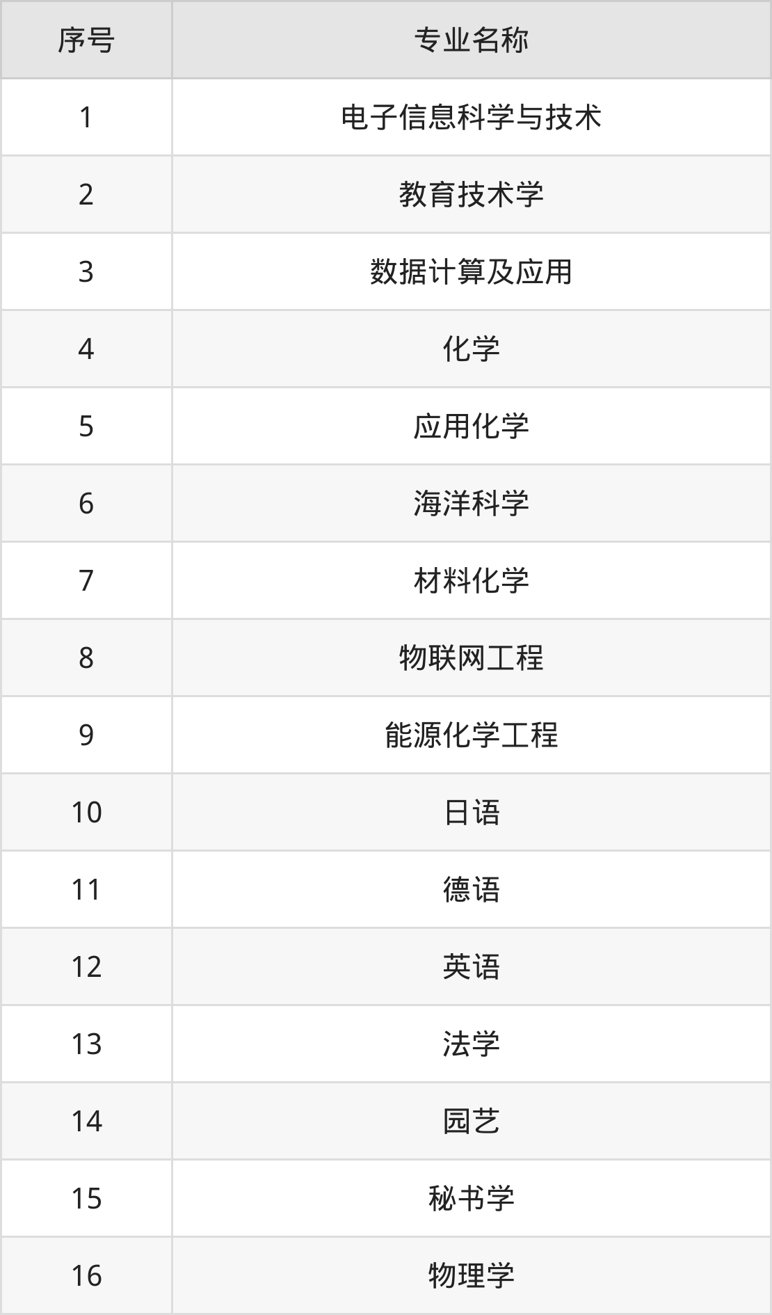物理类(理科)本科招生专业:教育技术学、数据计算及应用、化学、应用化学、海洋科学、材料化学、物联网工程、能源化学工程、日语、德语等。