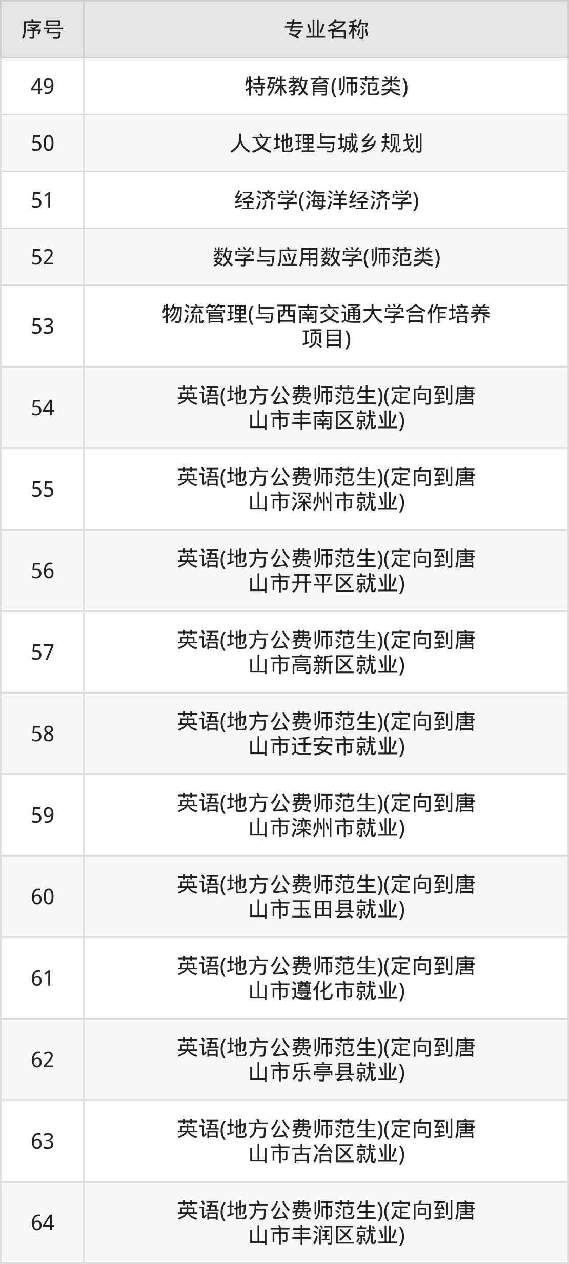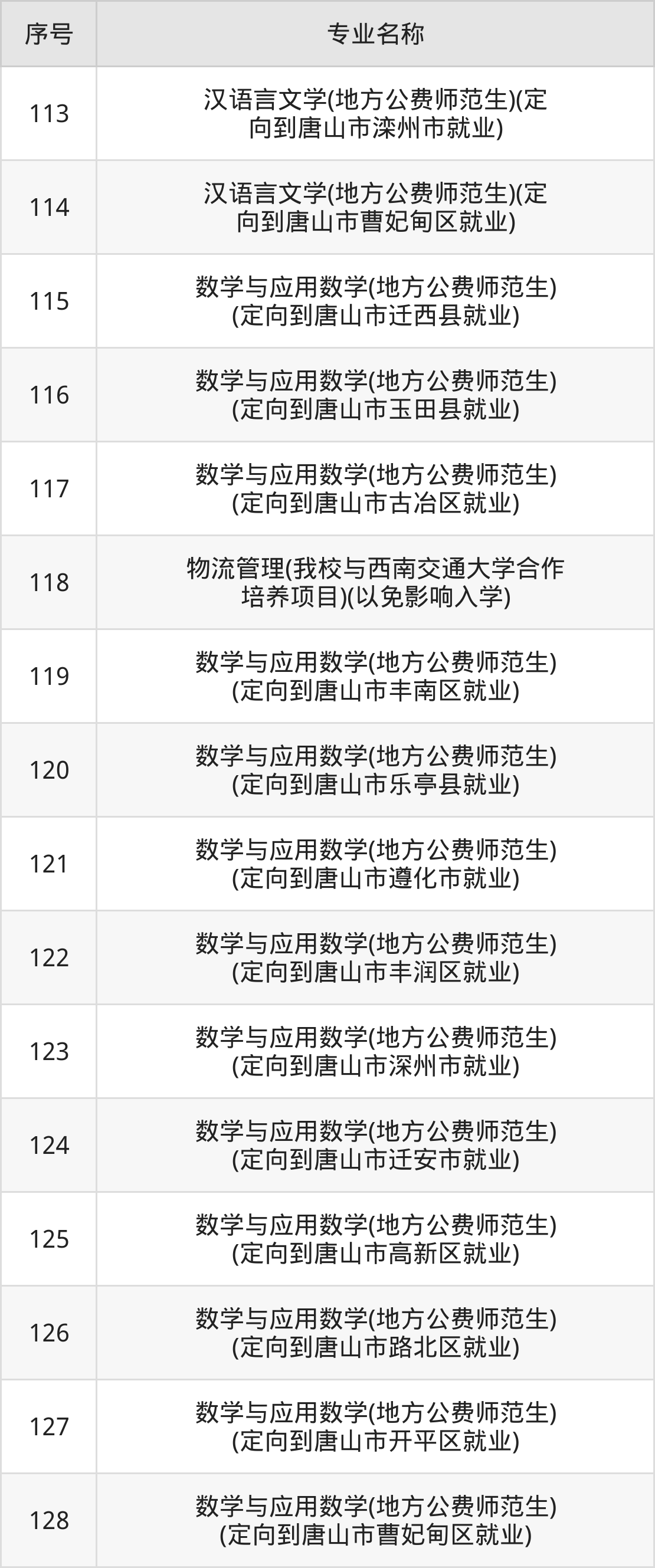 三、唐山师范学院2024招生专业