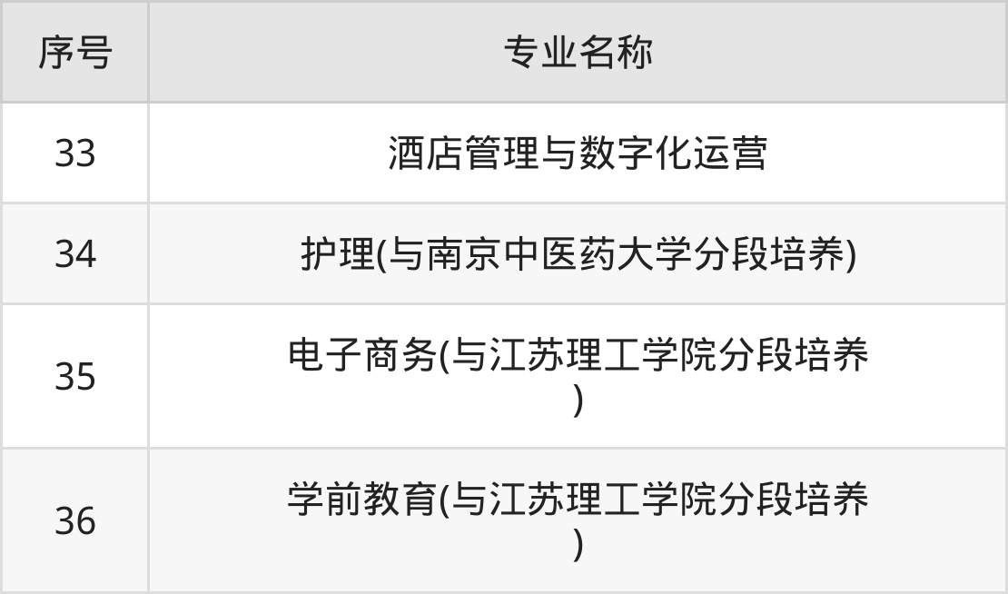 目前,镇江市高等专科学校公布了2024年专科招生专业,共36个。