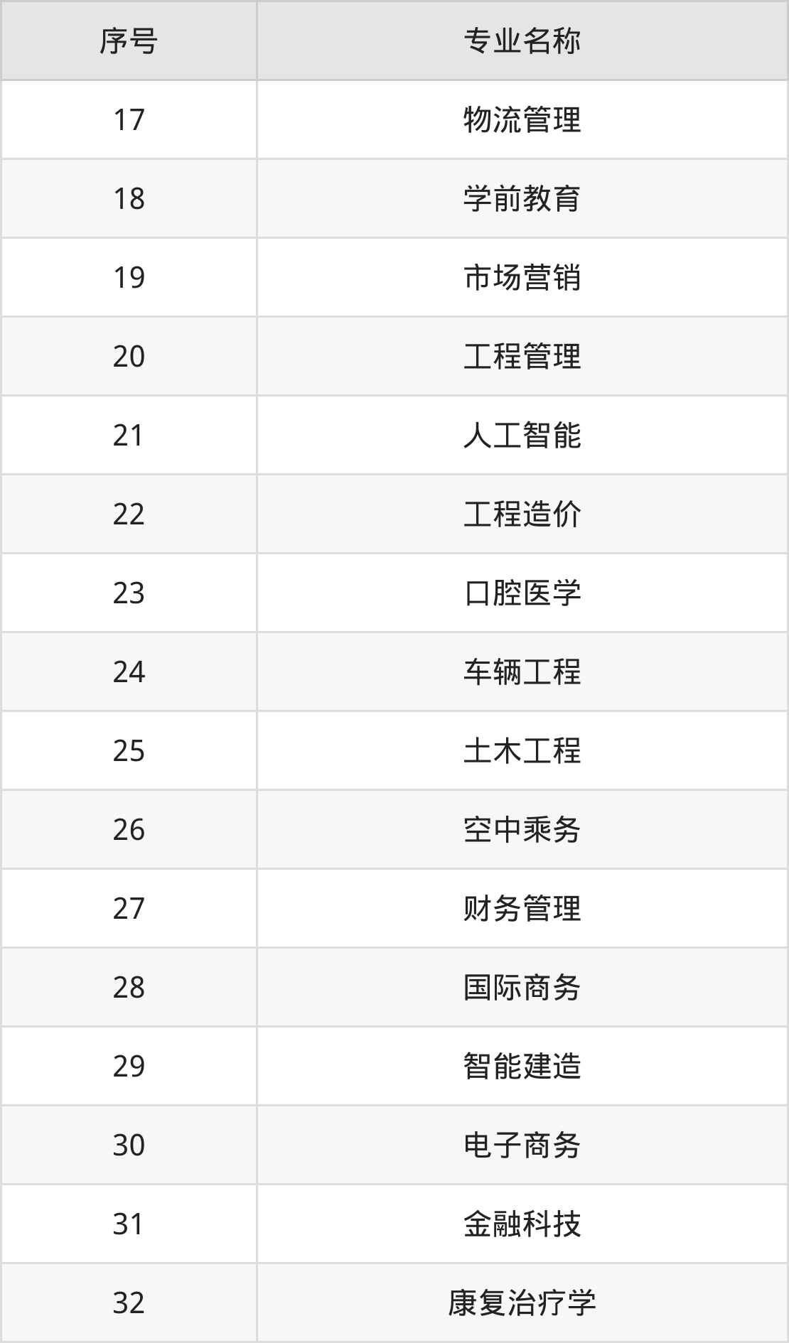 物理类(理科)本科招生专业:日语、会计学、护理学、智能建造、金融科技、电子商务、车辆工程、物流管理、人工智能、商务英语等。