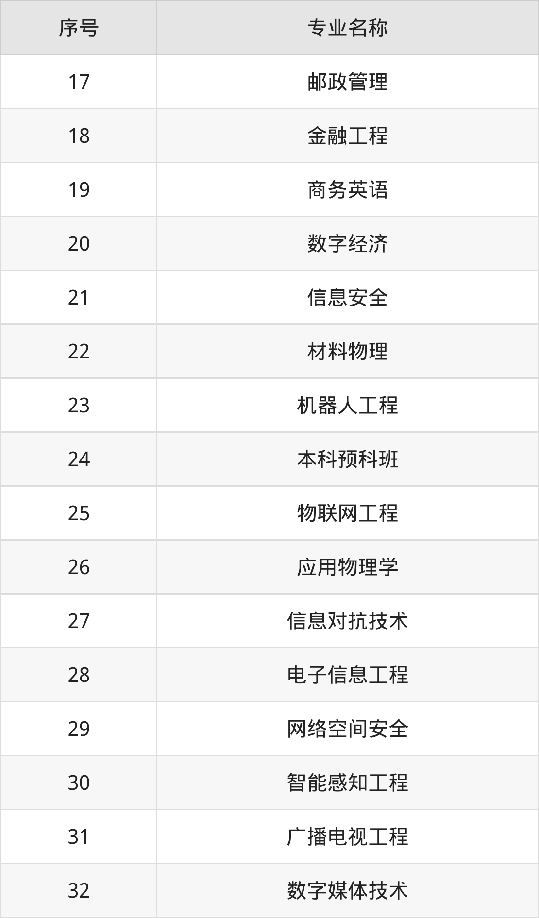物理类(理科)本科招生专业:自动化、预科班、会计学、工业工程、网络工程、信息工程、信息安全、数字经济、邮政工程、金融工程等。