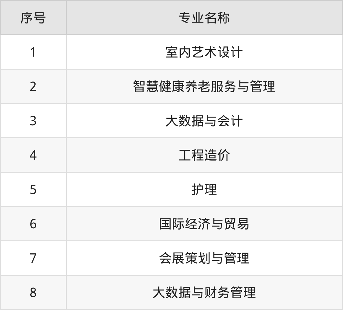 目前,福建华南女子职业学院公布了2024年专科招生专业,共8个。