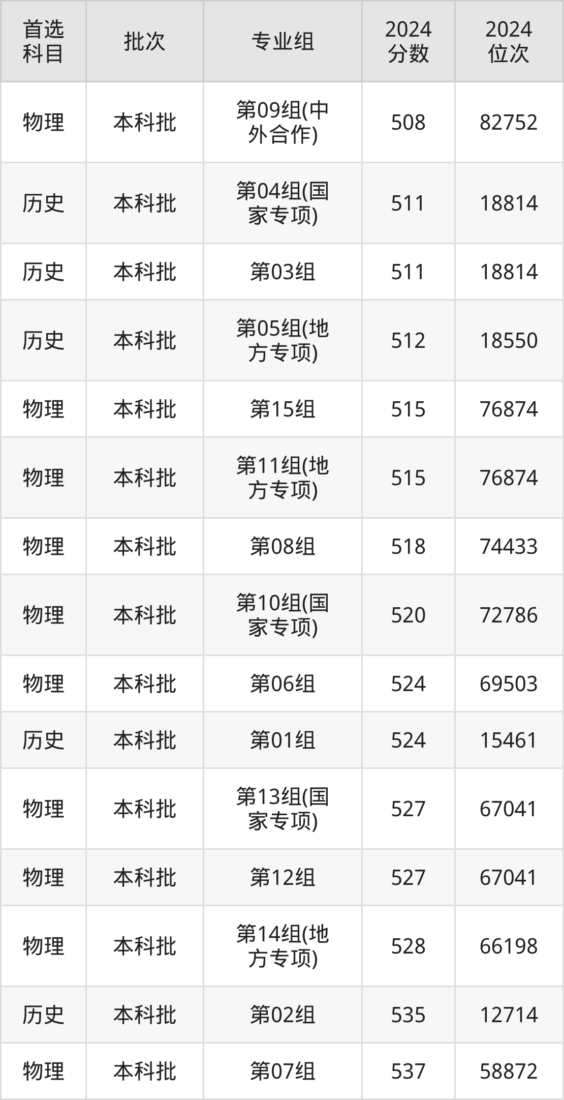 从2024年湖北经济学院在湖北省内的录取分数线来看,本科批录取分数线都在500分以上,录取分数线最高的是第07组,2024年最低分为537分;录取分数线最低的是第09组(中外合作),2024年最低分为508分。