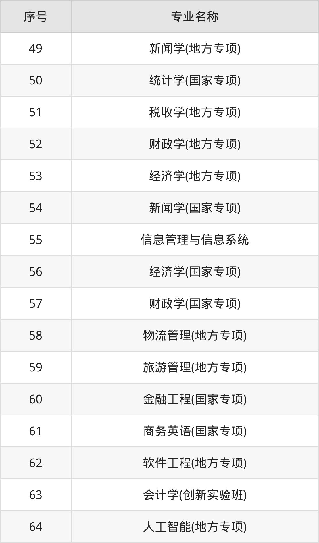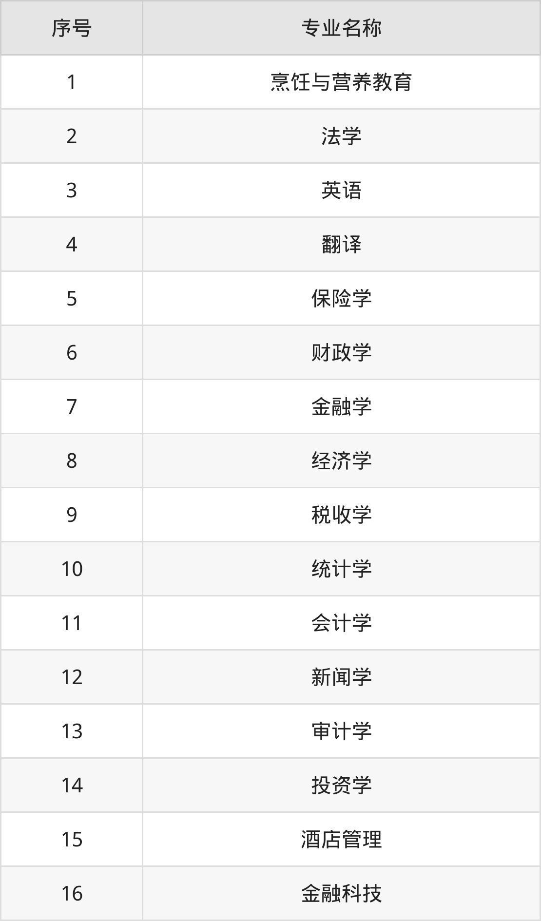 历史类(文科)本科招生专业:法学、英语、翻译、财政学、审计学、金融学、经济学、税收学、保险学、会计学等。
