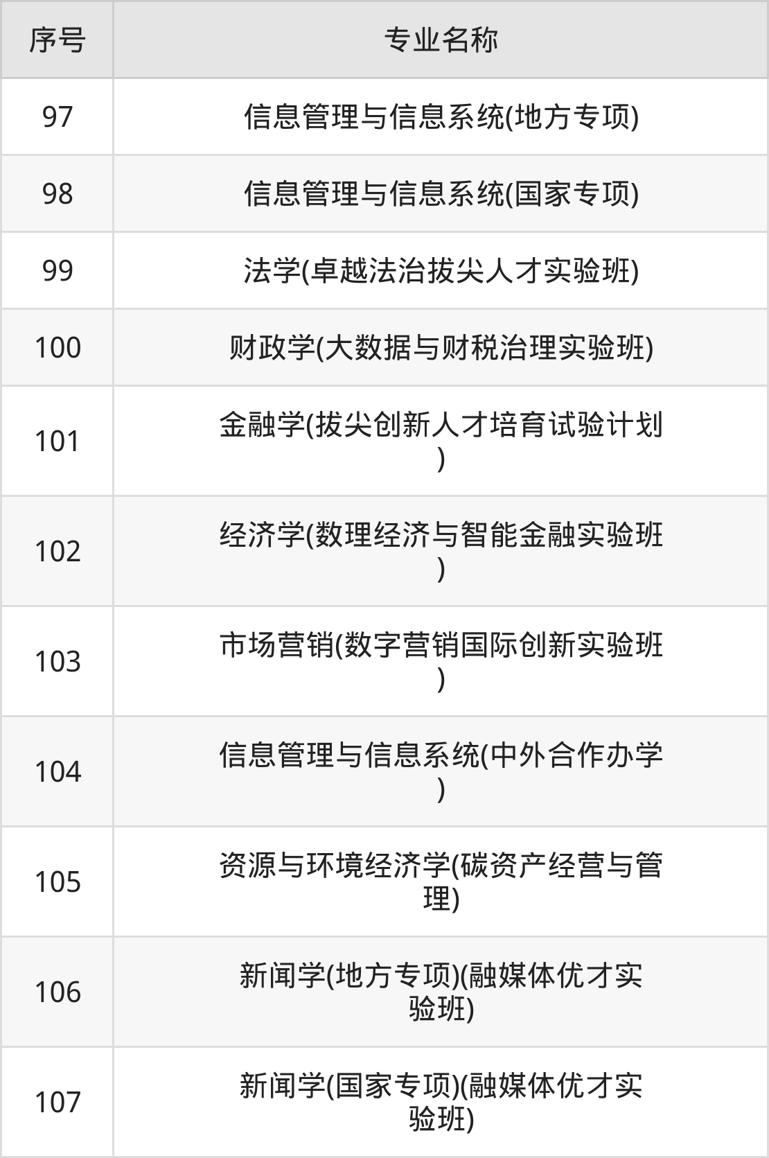招生专业:107个;