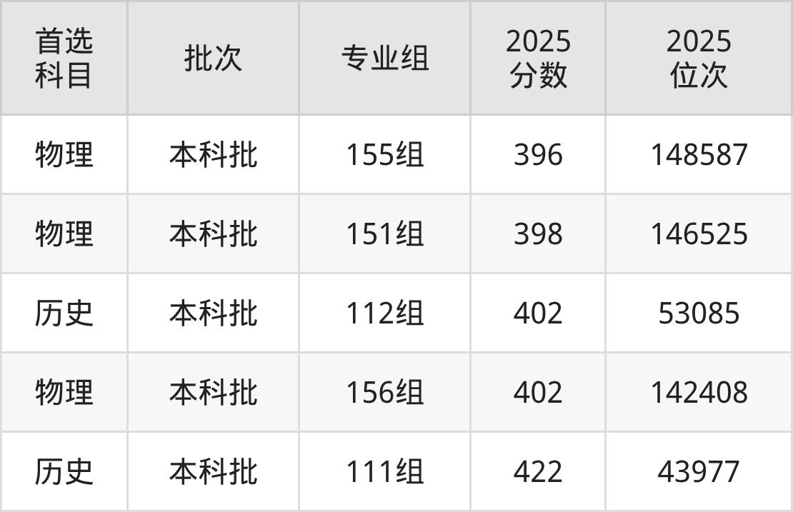 从2025年广西民族大学相思湖学院在广西壮族自治区内的录取分数线来看,本科批录取分数线都在390分以上,录取分数线最高的是111组,2025年最低分为422分;录取分数线最低的是155组,2025年最低分为396分。