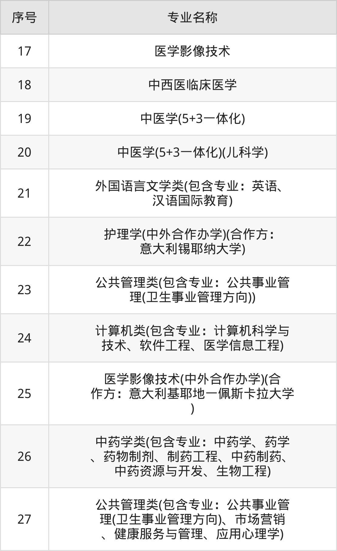 目前,河南中医药大学公布了2024年本科招生专业,共27个。
