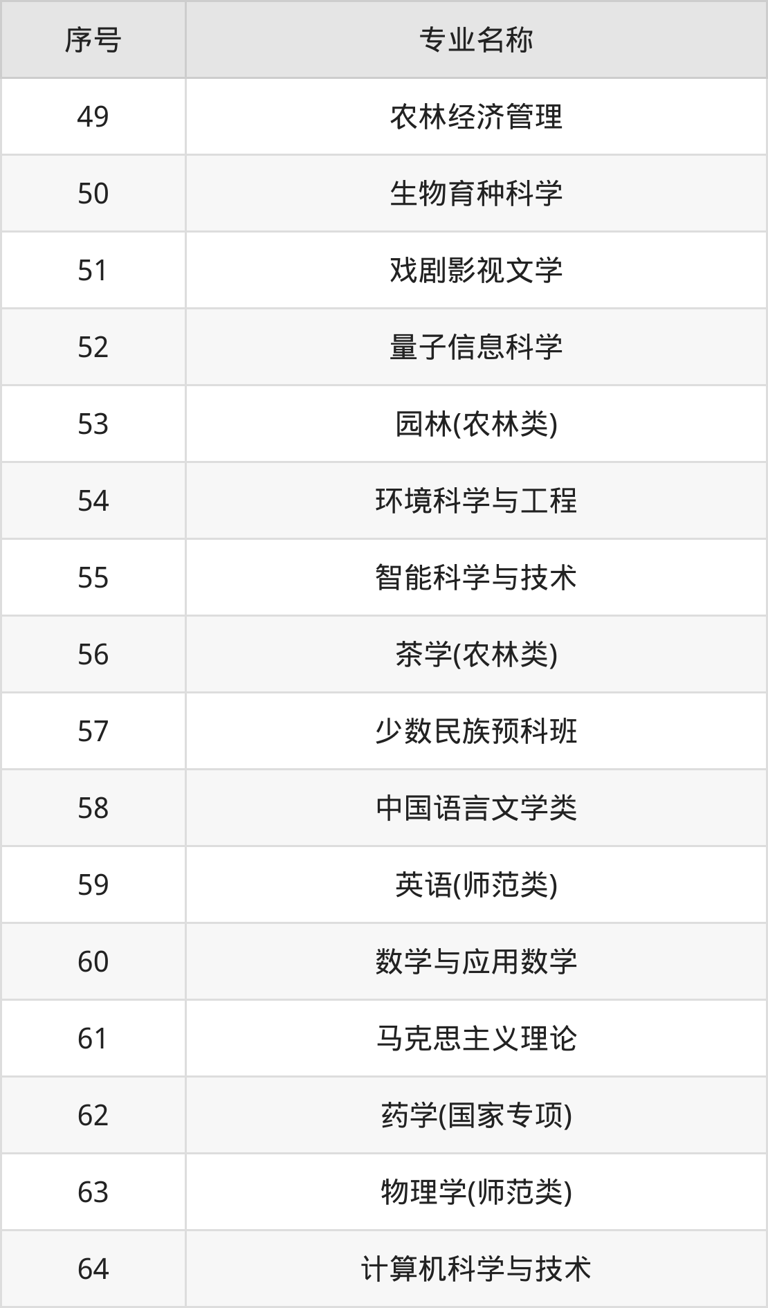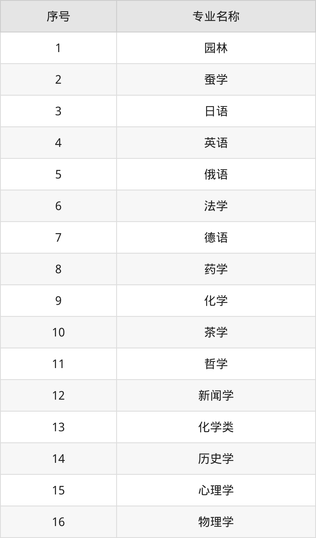 物理类(理科)本科招生专业:日语、德语、法学、化学、茶学、哲学、药学、蚕学、园林、俄语等。
