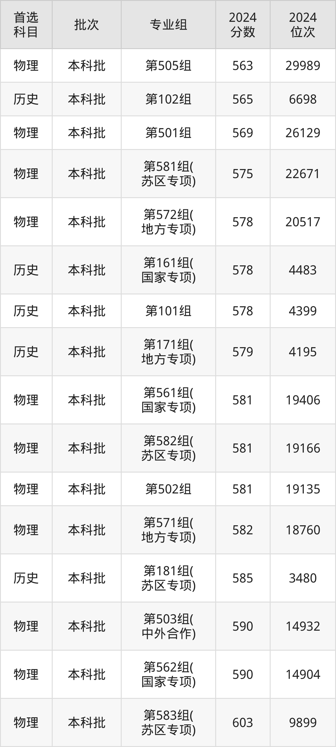 从2024年南昌大学在江西省内的录取分数线来看,本科批录取分数线都在560分以上,录取分数线最高的是第504组,2024年最低分为605分;录取分数线最低的是第505组,2024年最低分为563分。