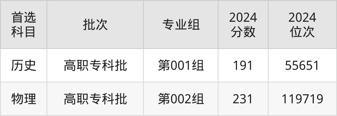 2024年厦门南洋职业学院在黑龙江省内专科批的录取分数线都在190分以上,在历史类的录取分数线为191分;物理类的录取分数线为231分。