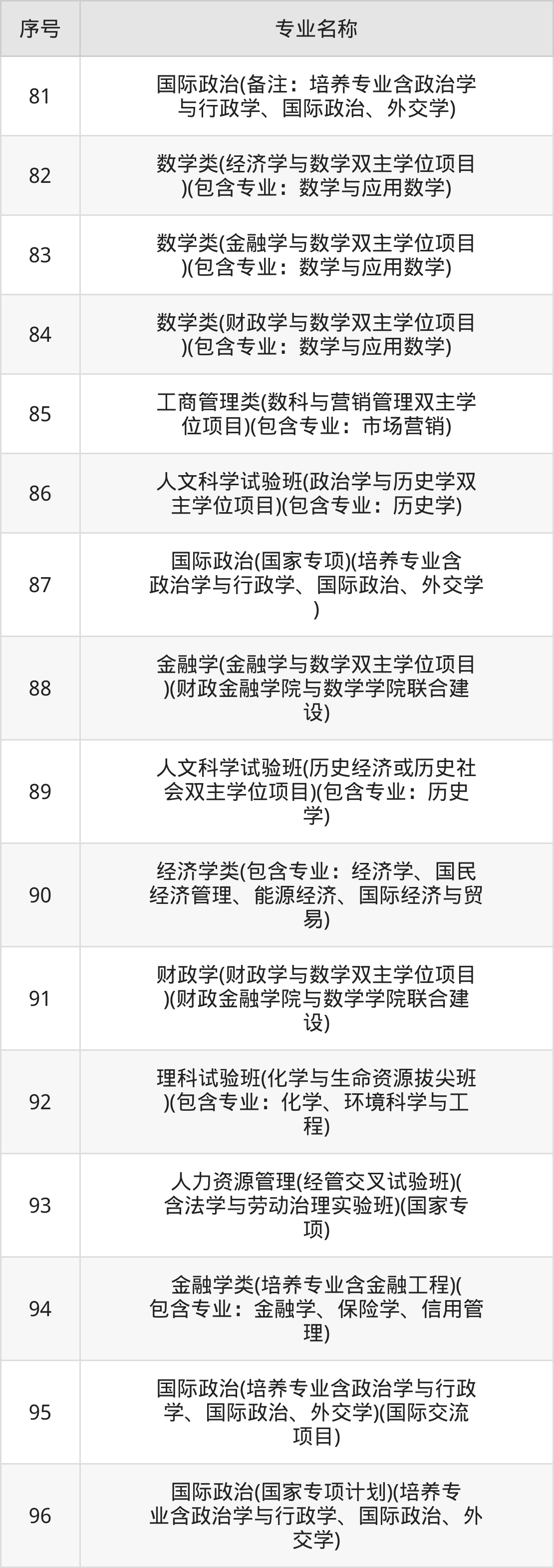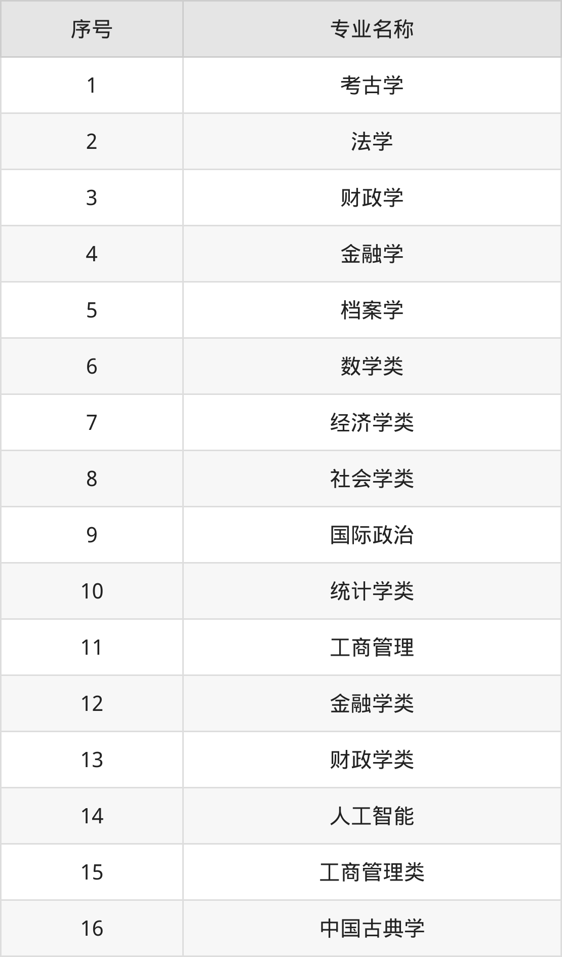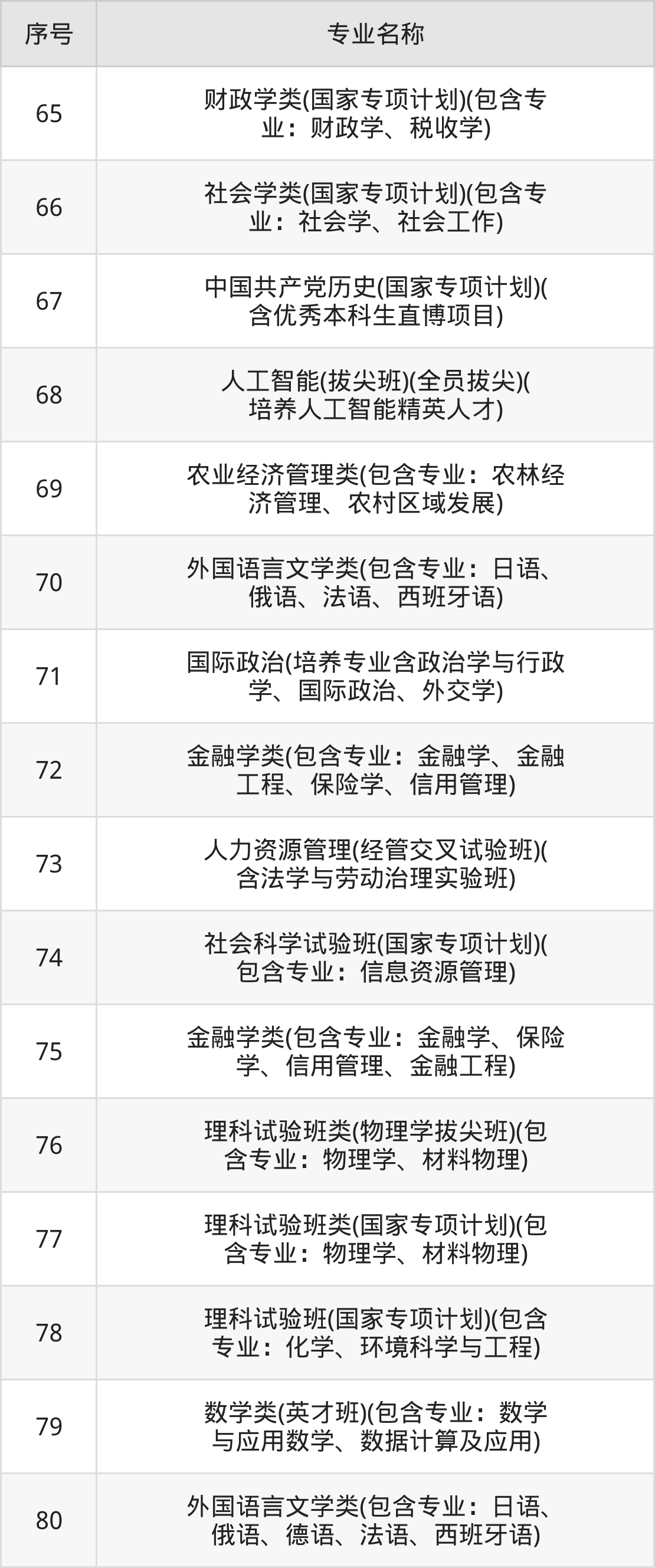 历史类(文科)本科招生专业:考古学、法学、档案学、财政学类、工商管理、金融学类、经济学类、国际政治、社会学类、中国古典学等。