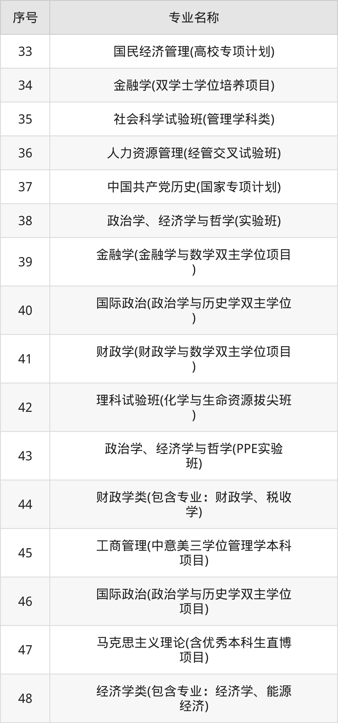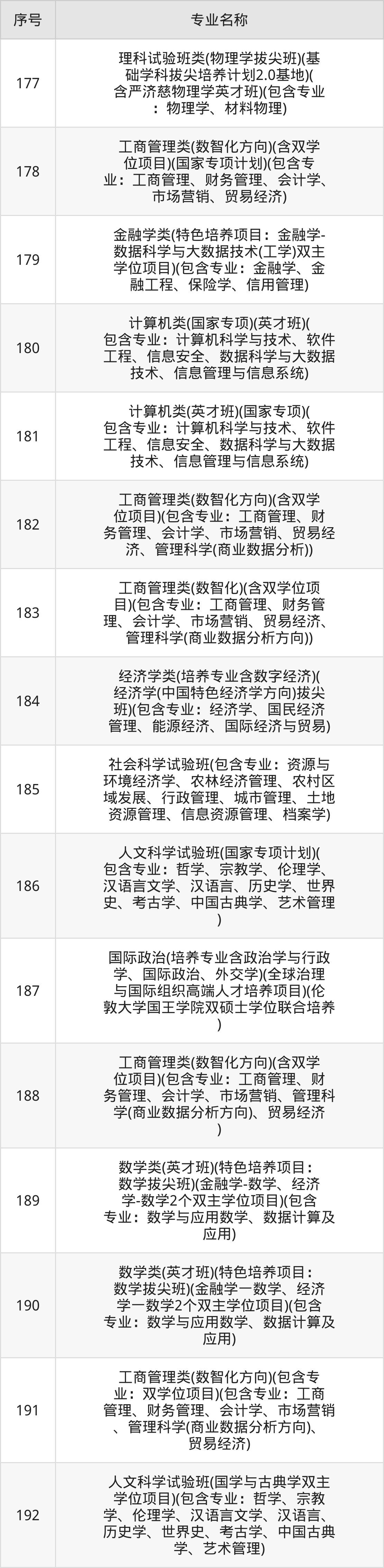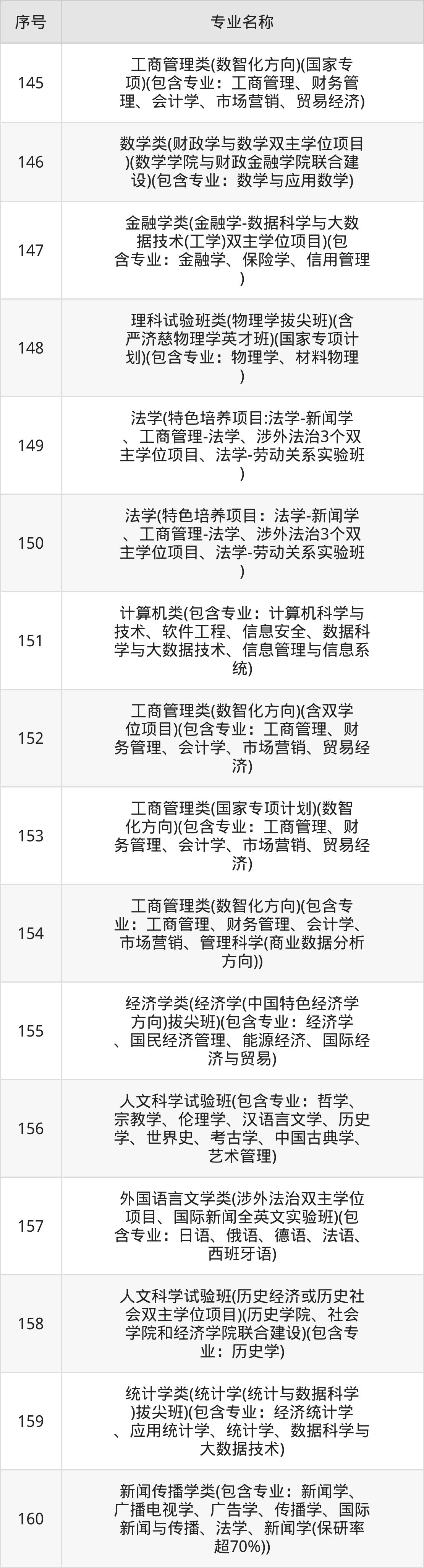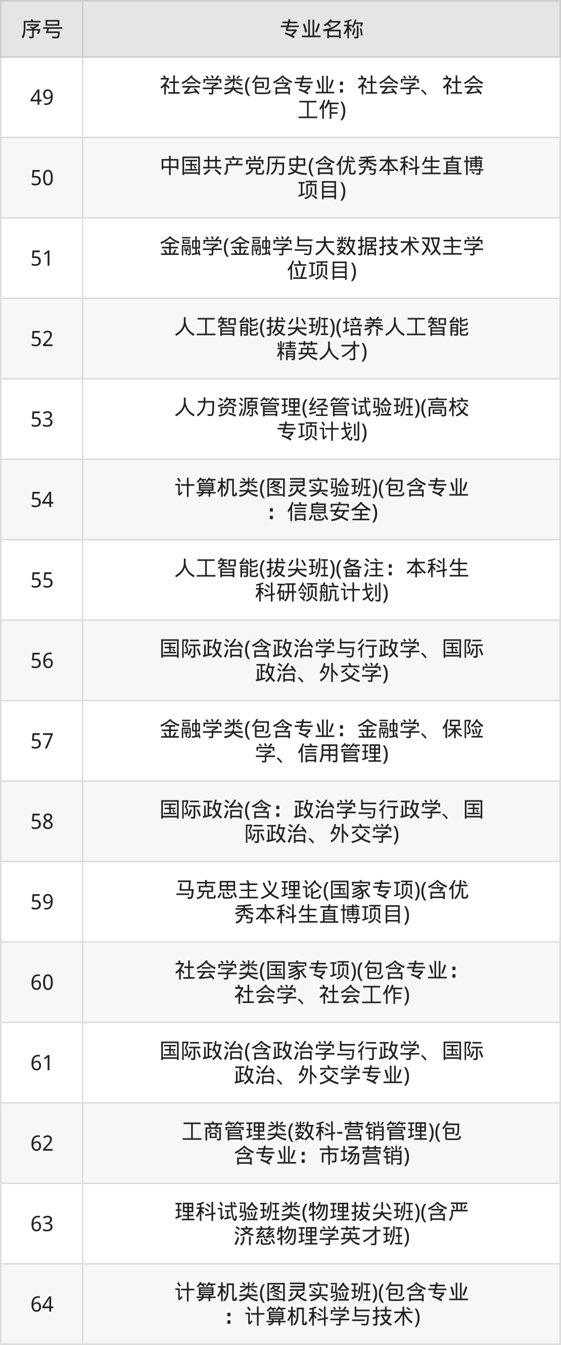 历史类(文科)本科招生专业:考古学、法学、档案学、财政学类、工商管理、金融学类、经济学类、国际政治、社会学类、中国古典学等。