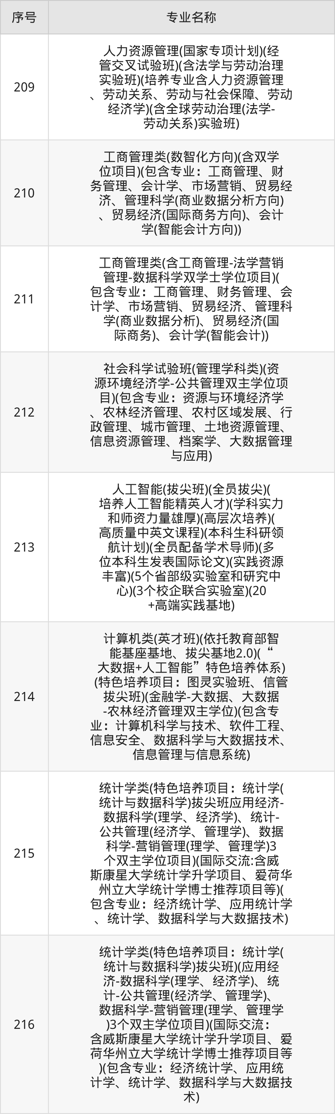招生专业:216个;
