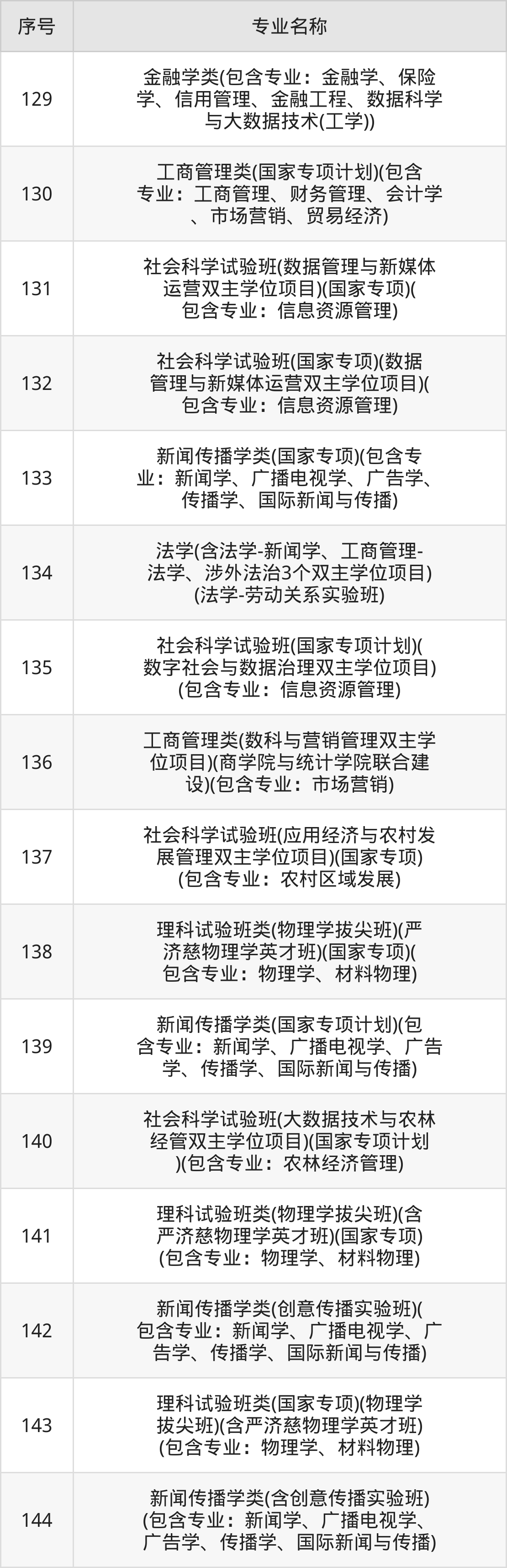 目前,中国人民大学公布了2024年本科招生专业,共216个。