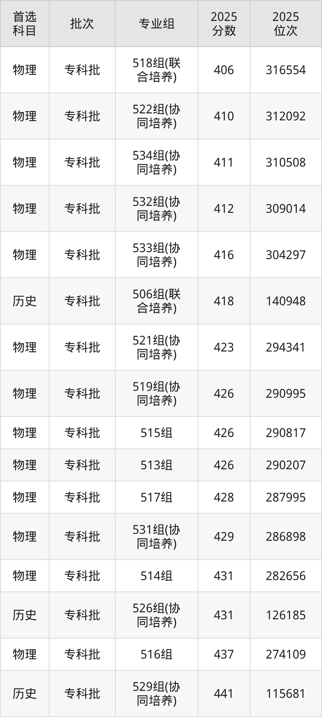 2025年东莞职业技术学院在广东省内专科批的录取分数线都在400分以上,在历史类的录取分数线在418分-474分之间;物理类的录取分数线在406分-437分之间。