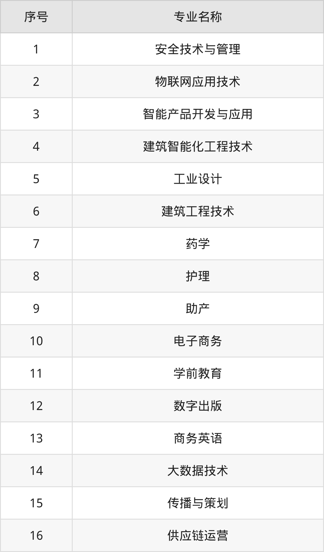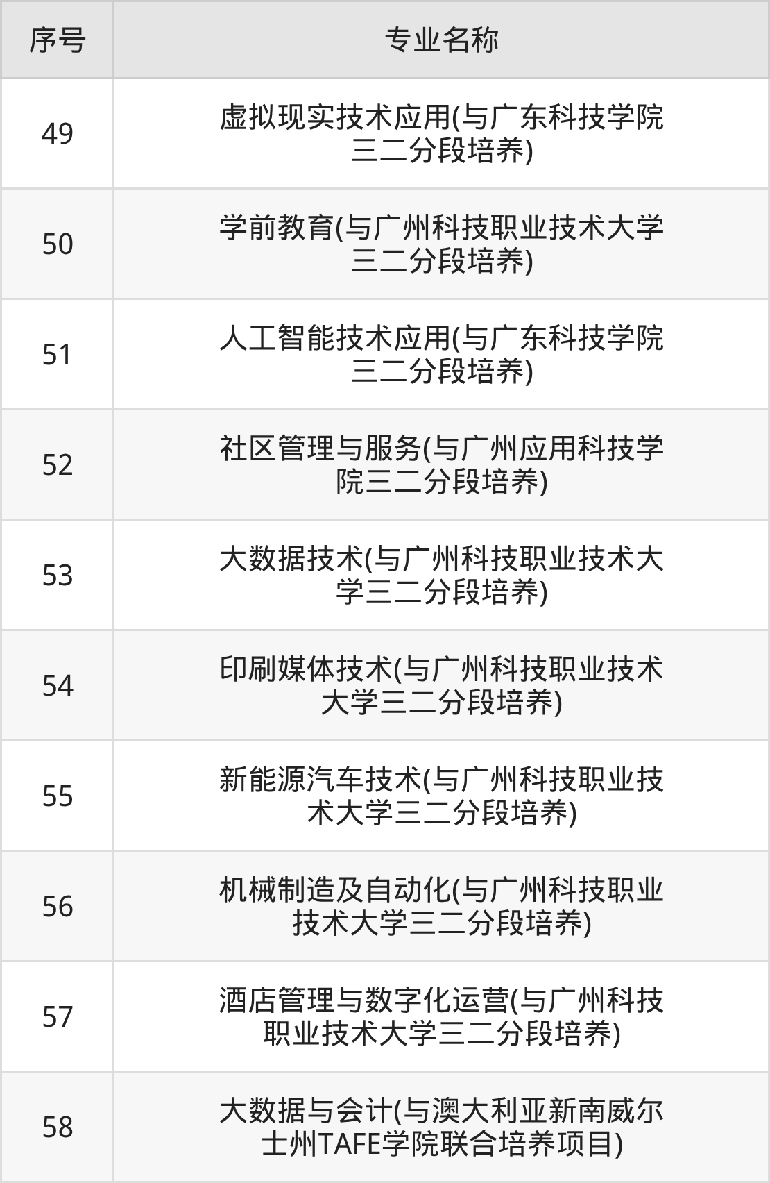 目前,东莞职业技术学院公布了2025年专科招生专业,共58个。