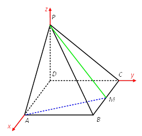 各点坐标如下:D(0,0,0),A(√2,0,0),C(0,1,0),B(√2,1,0),P(0,0,1),M(√2/2,1,0)。