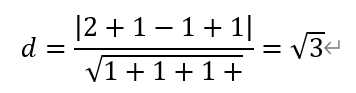 [应用1]求点(2,1,1)到平面x+y-z+1=0的距离。