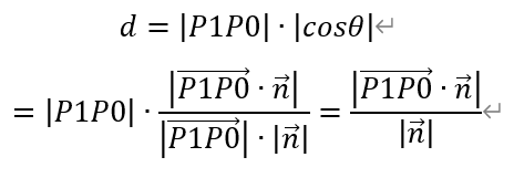 证明:在平面上任取一点P1(x1,y1,z1)。向量n为平面的法向量,向量P1P0与向量n的夹角为θ。则所求的距离为,