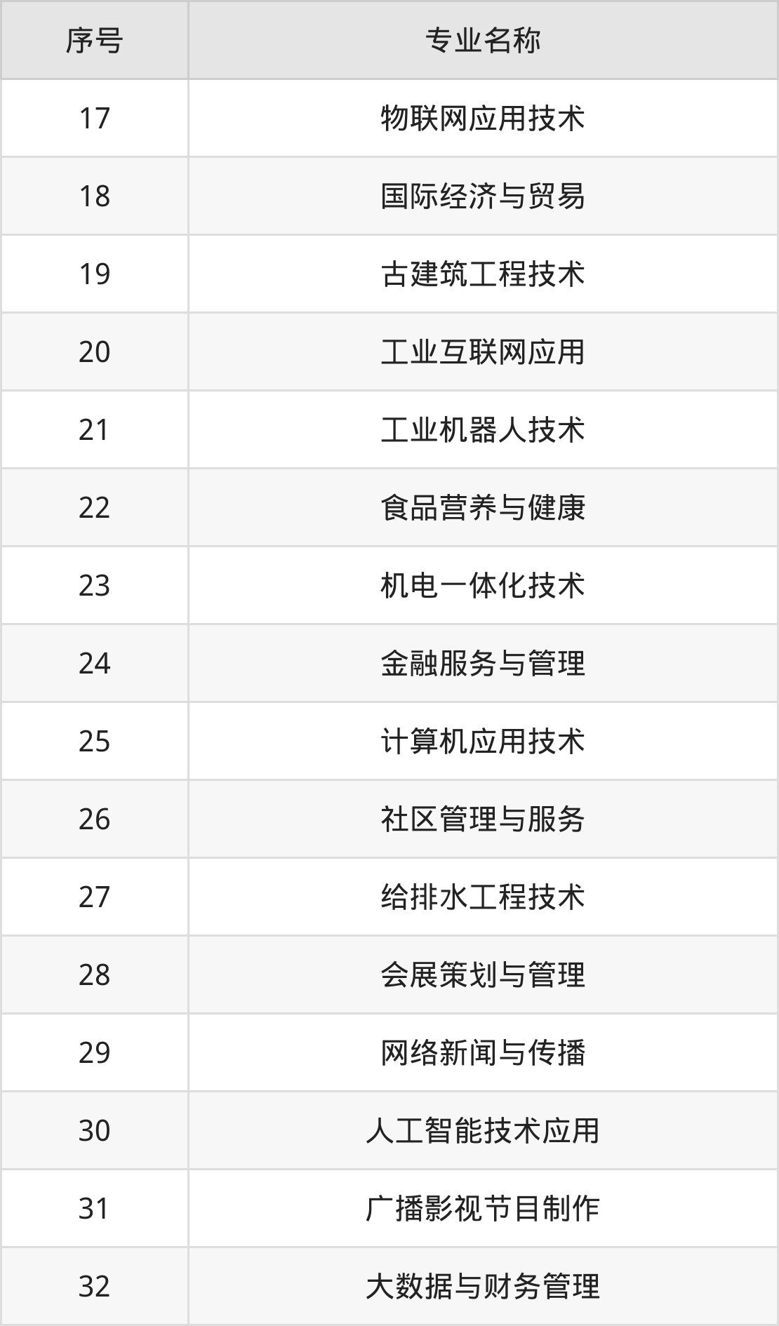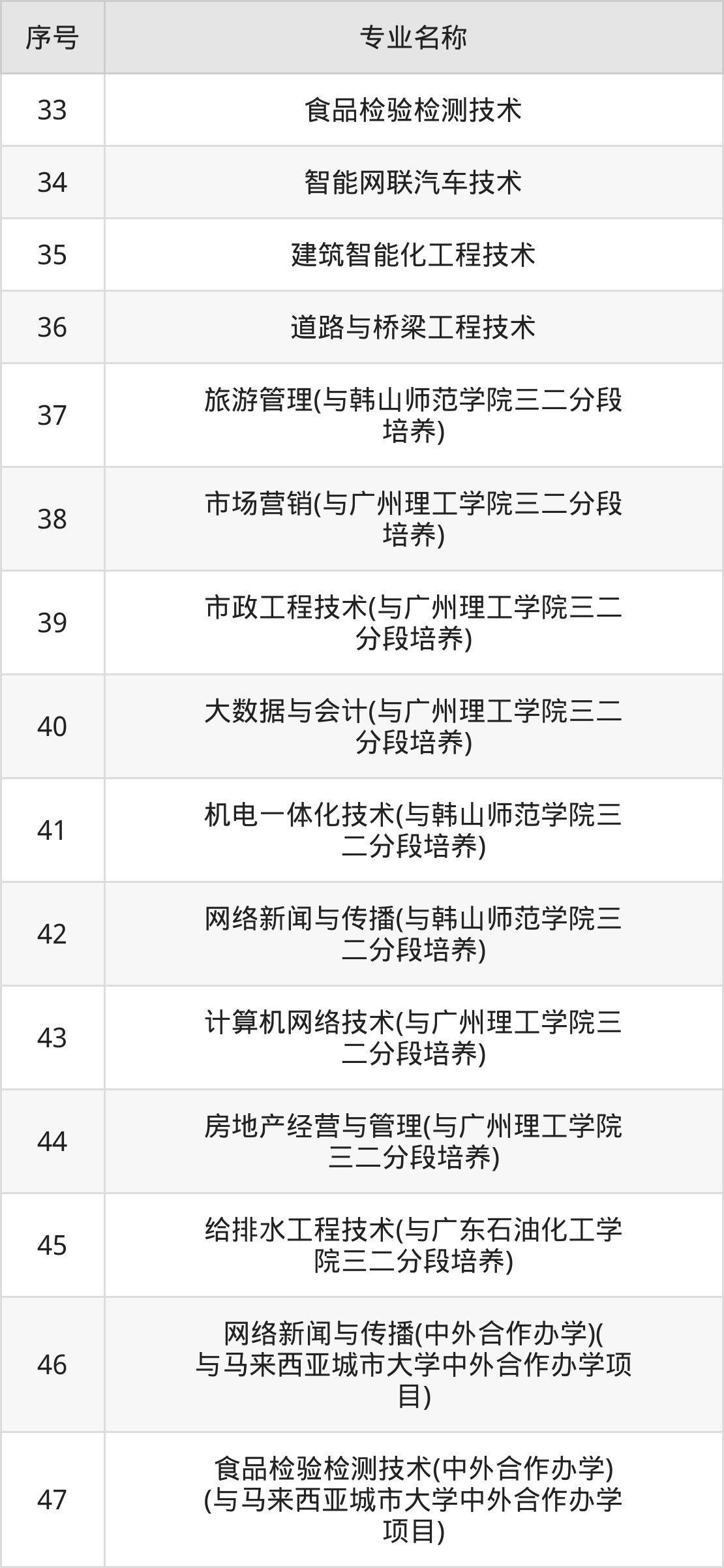 目前,广州城市职业学院公布了2024年专科招生专业,共47个。