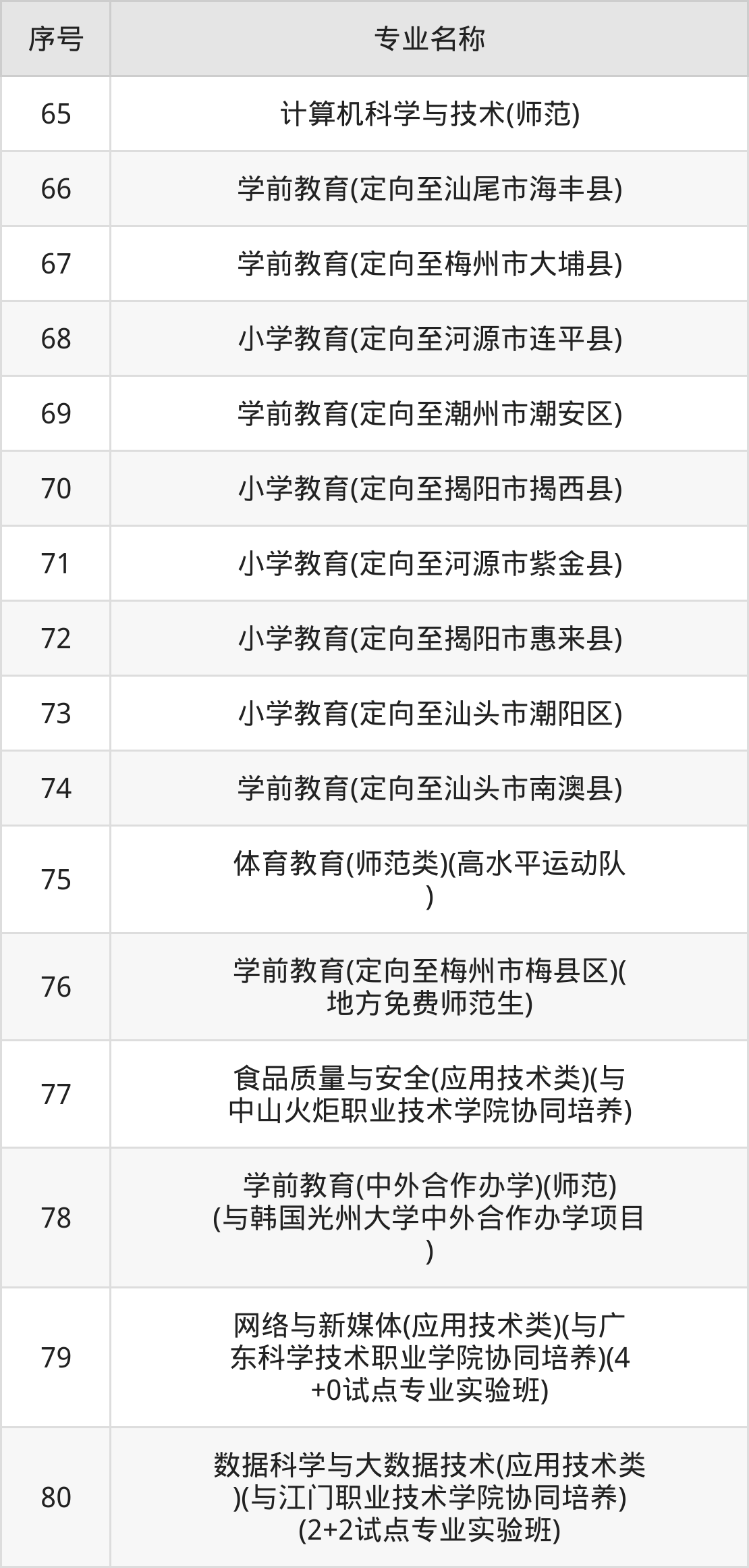 目前,韩山师范学院公布了2024年本科招生专业,共80个;2024年专科招生专业为6个。