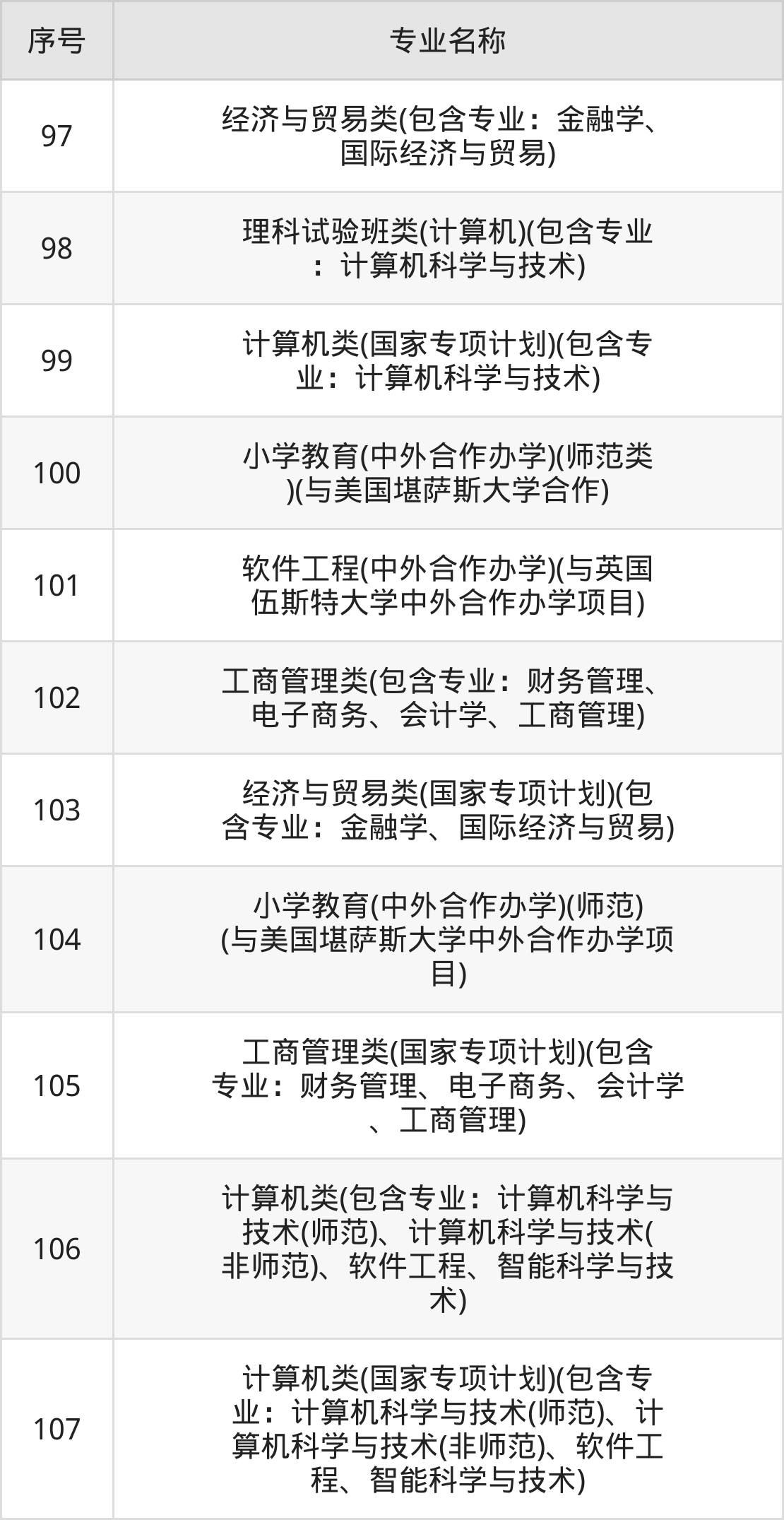 招生专业:107个;