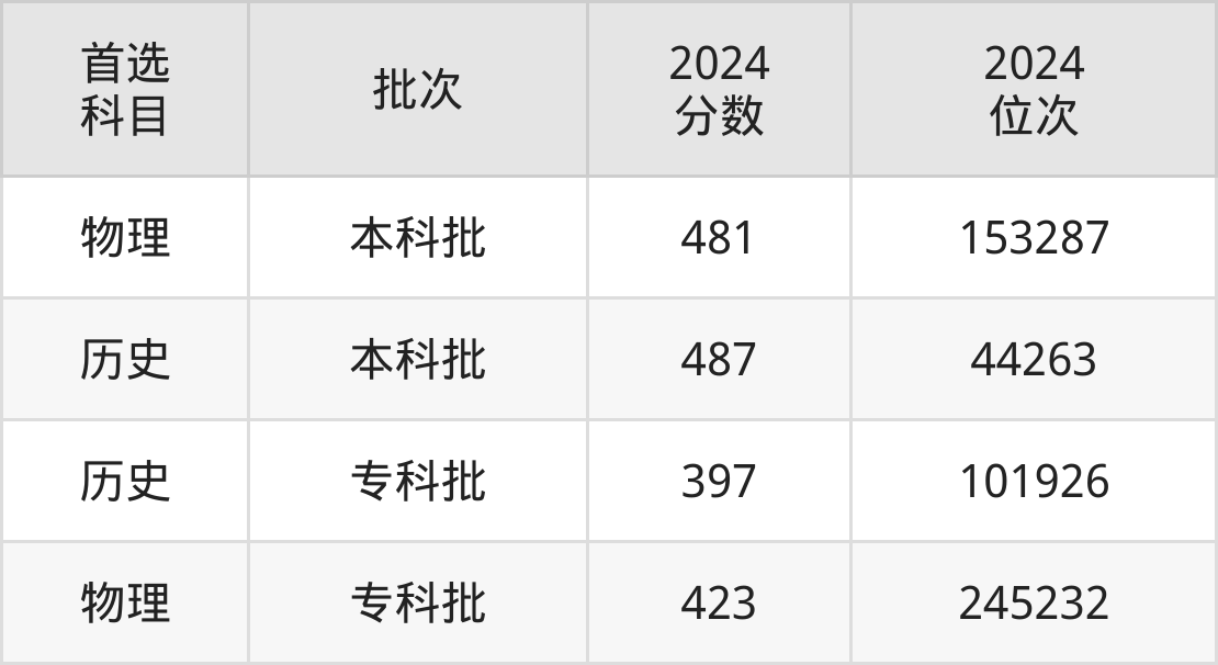 2024年河北石油职业技术大学在河北省内本科批录取分数线都在480分以上;而专科批录取分数线都在390分以上,物理类整体录取分数线要高于历史类,具体详情见下文。