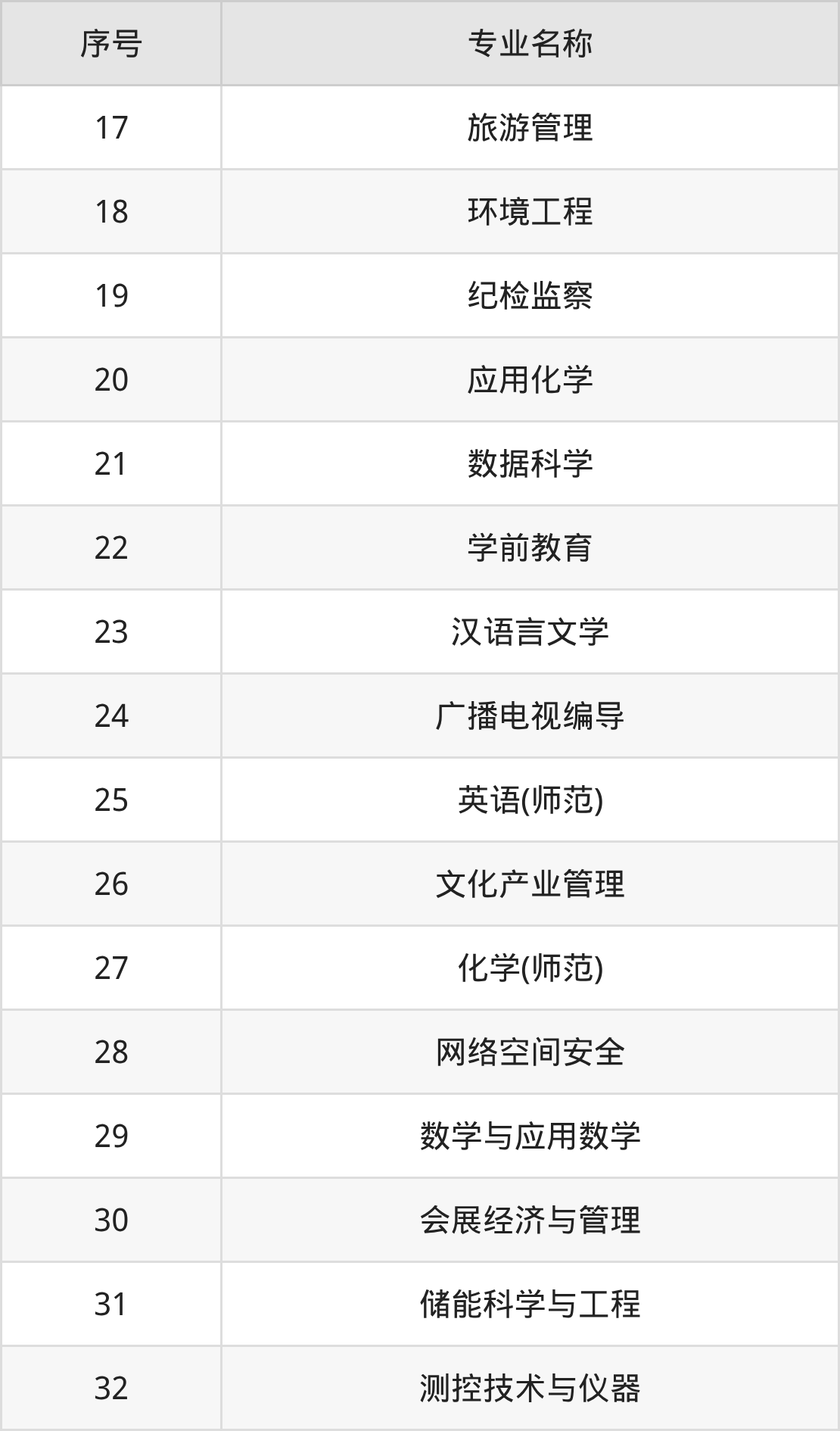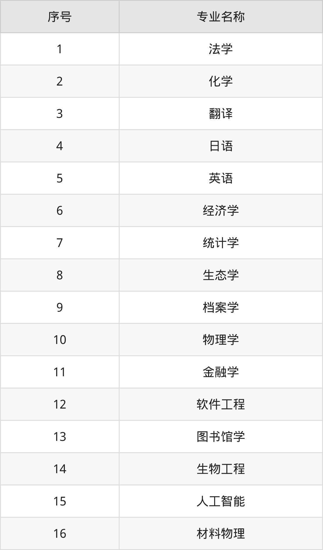 历史类(文科)本科招生专业:法学、英语、日语、翻译、档案学、经济学、金融学、学前教育、图书馆学、纪检监察等。