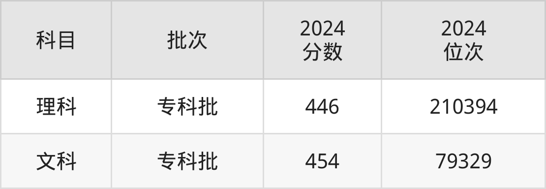 2024年四川职业技术学院在四川省内专科批的录取分数线都在440分以上,在文科的录取分数线为454分;理科的录取分数线为446分。