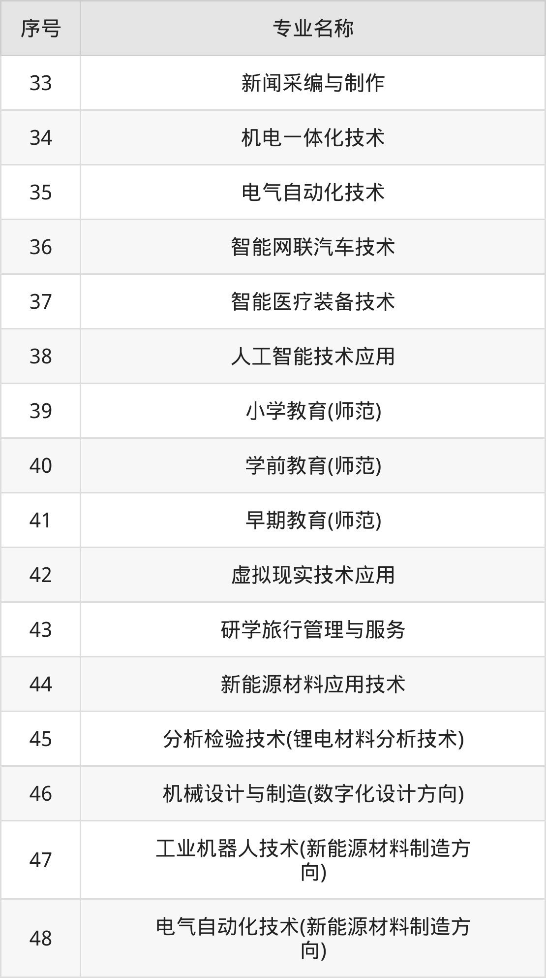 目前,四川职业技术学院公布了2024年专科招生专业,共50个。