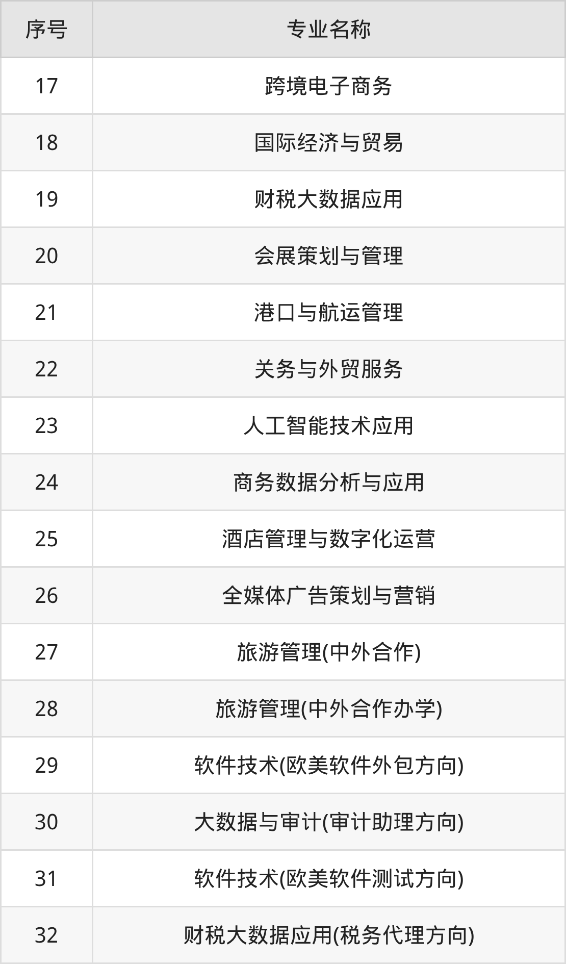 目前,天津商务职业学院公布了2025年专科招生专业,共35个。