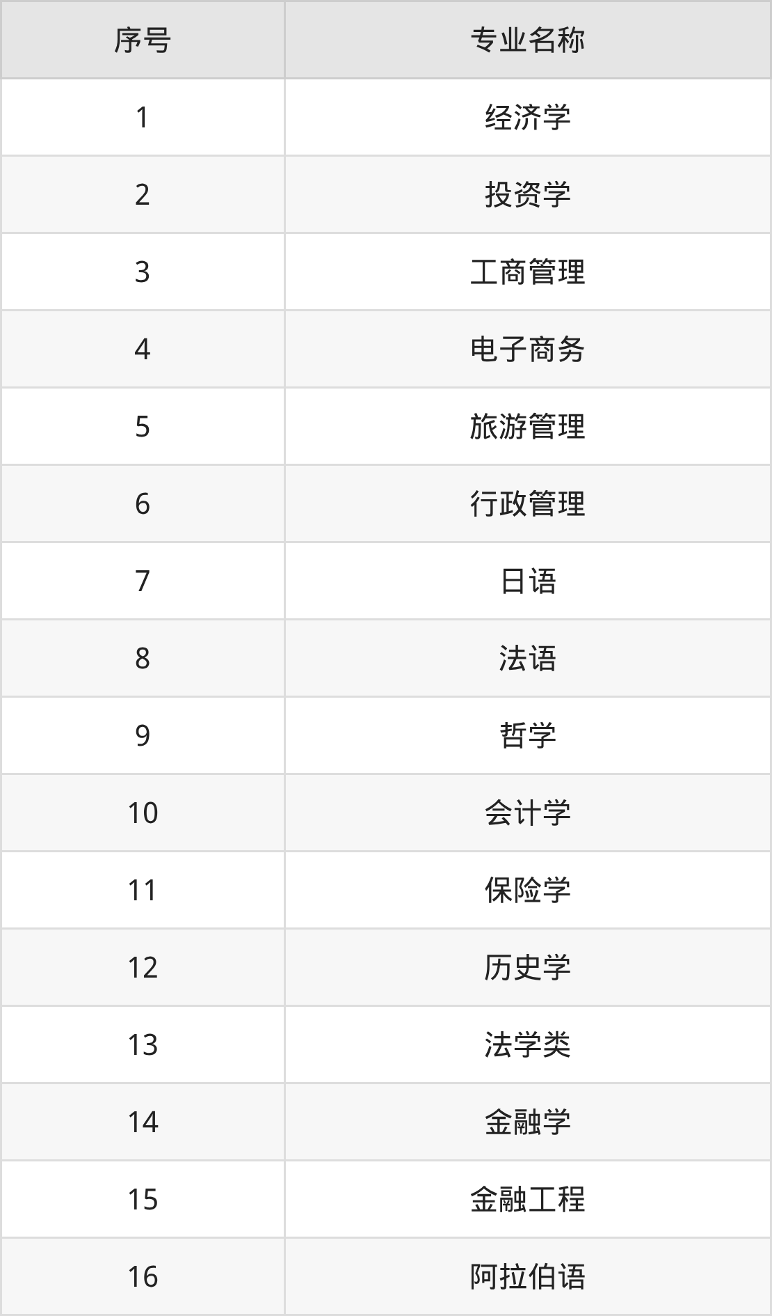 历史类(文科)本科招生专业:日语、法语、哲学、法学类、会计学、金融学、保险学、历史学、社会工作、阿拉伯语等。