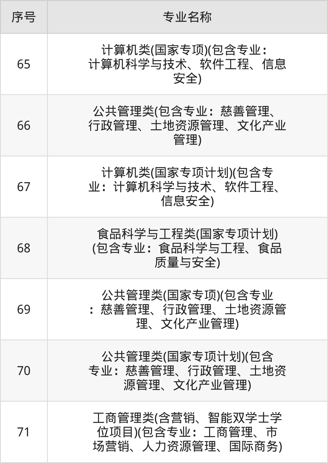 招生专业:71个;