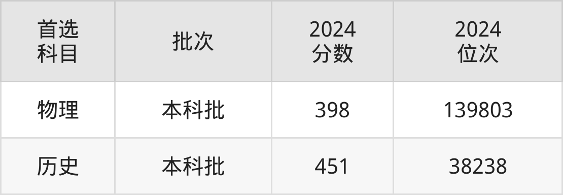 招生科类:物理、理科、历史、文科。