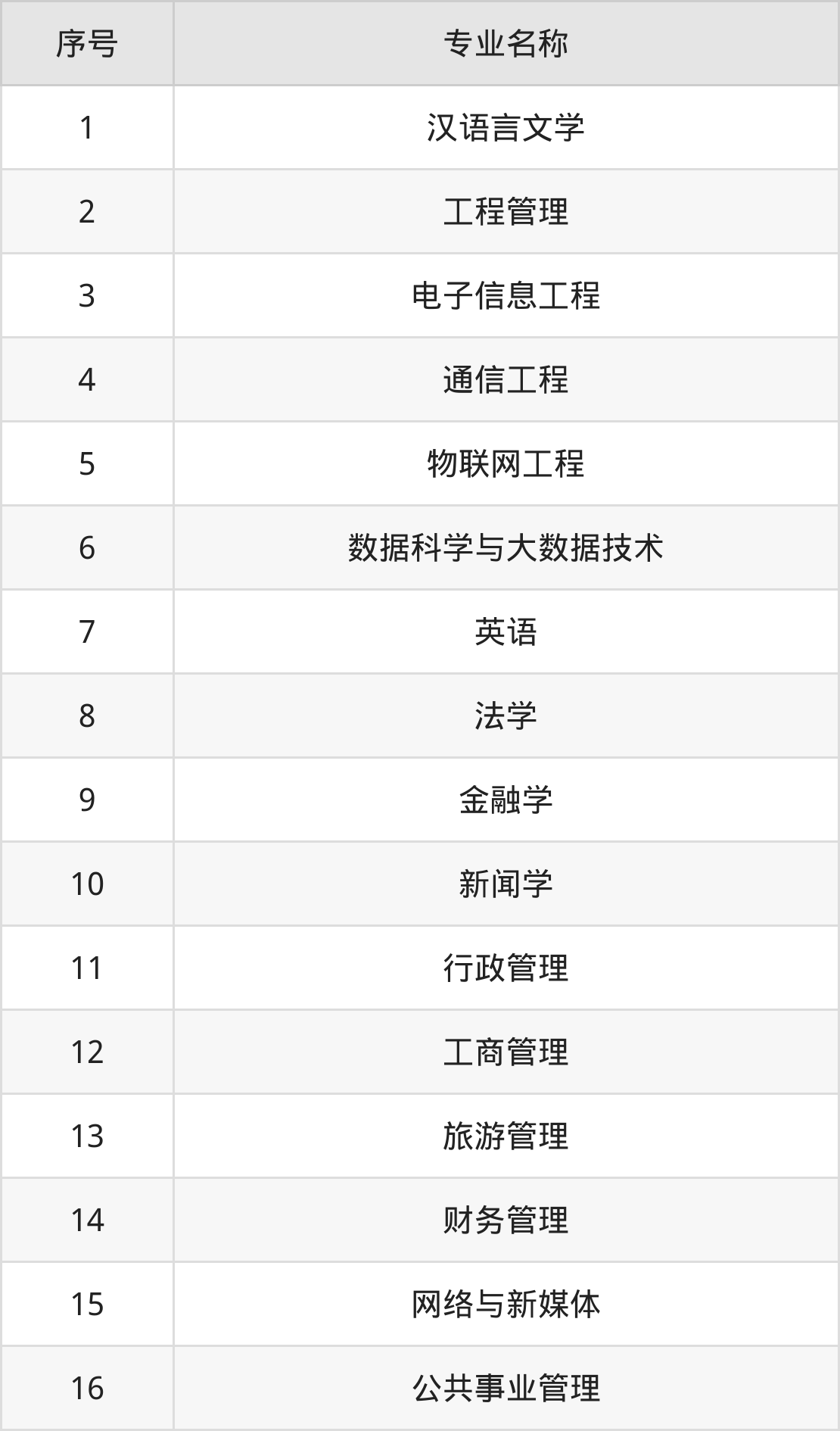 物理类(理科)本科招生专业:工程管理、电子信息工程、通信工程、物联网工程、数据科学与大数据技术、英语、法学、金融学、行政管理、旅游管理等。