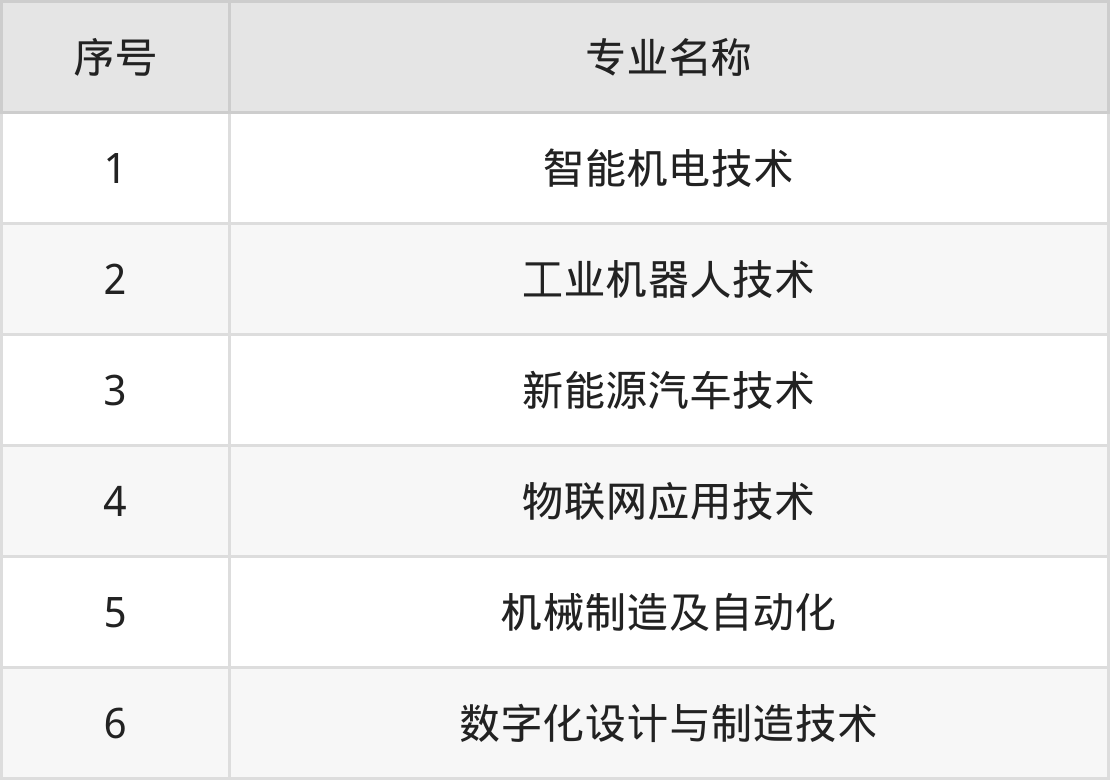 目前,广西智能制造职业技术学院公布了2024年专科招生专业,共6个。