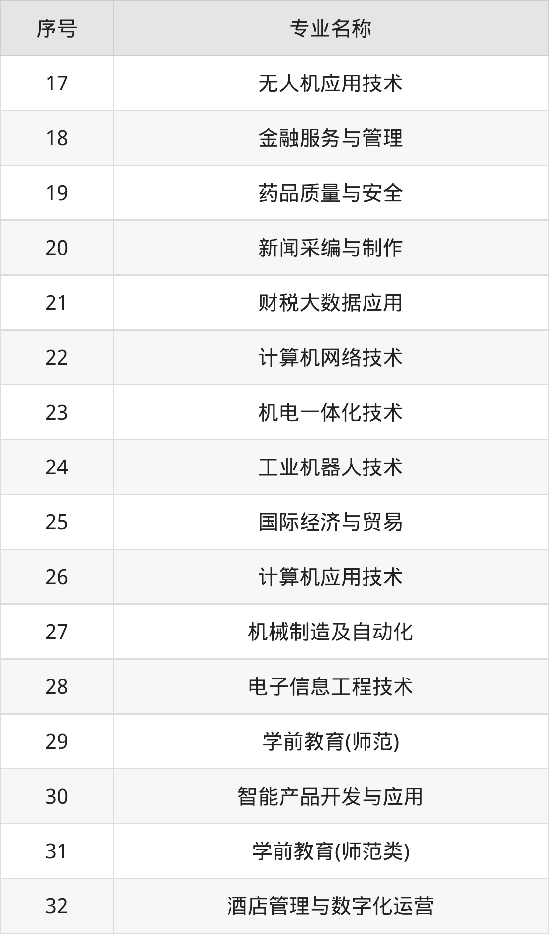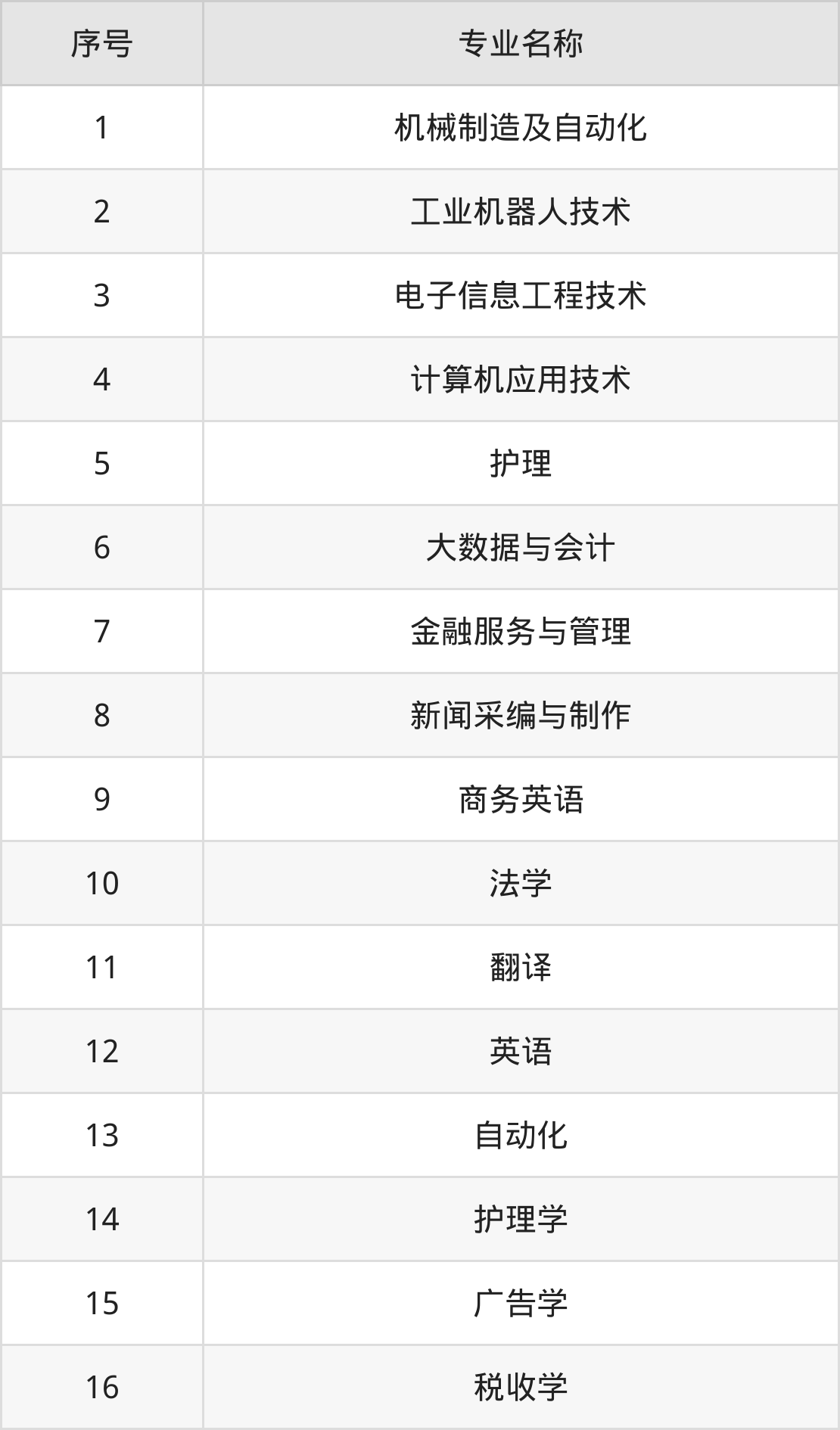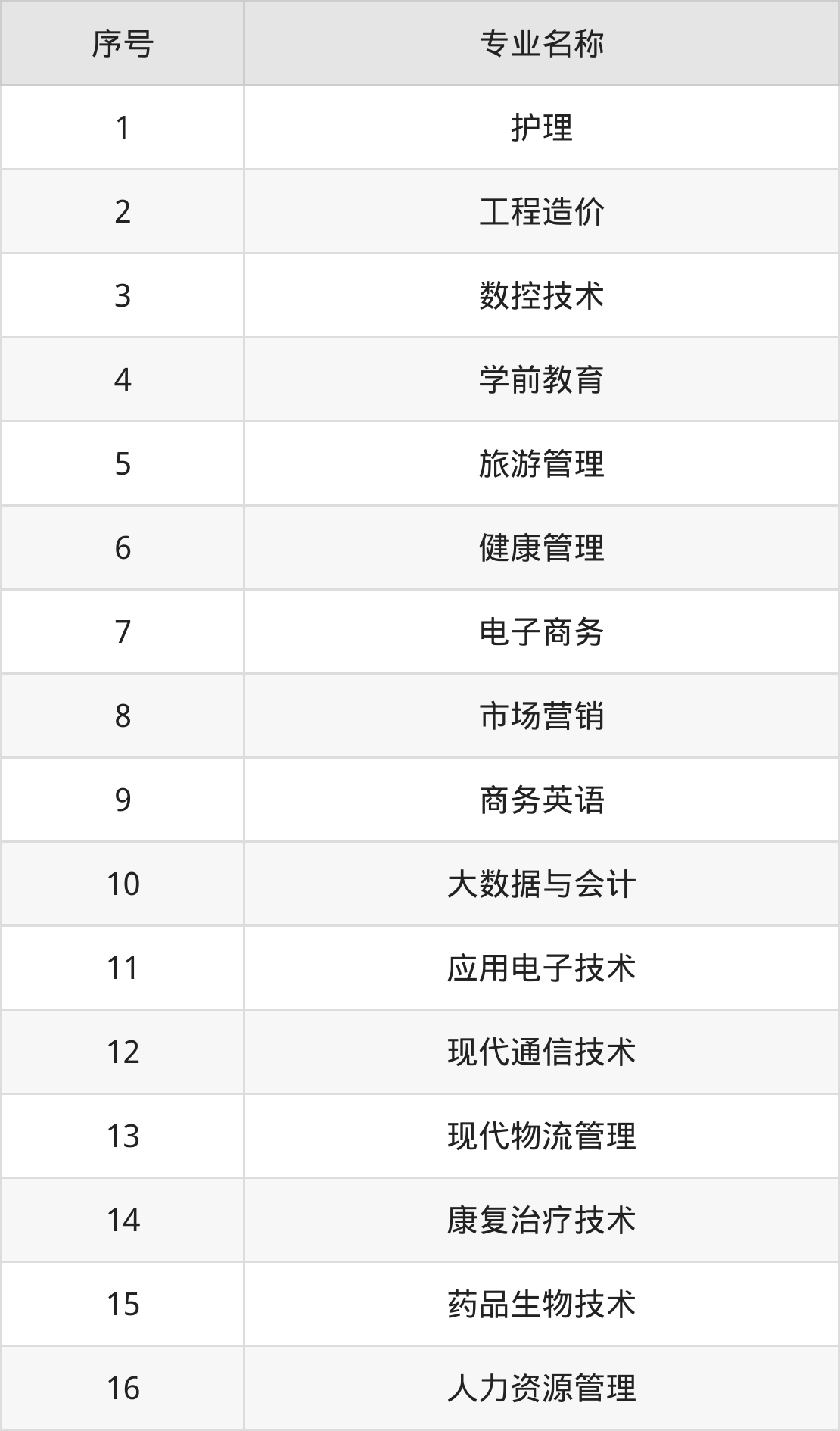 专科招生专业:
