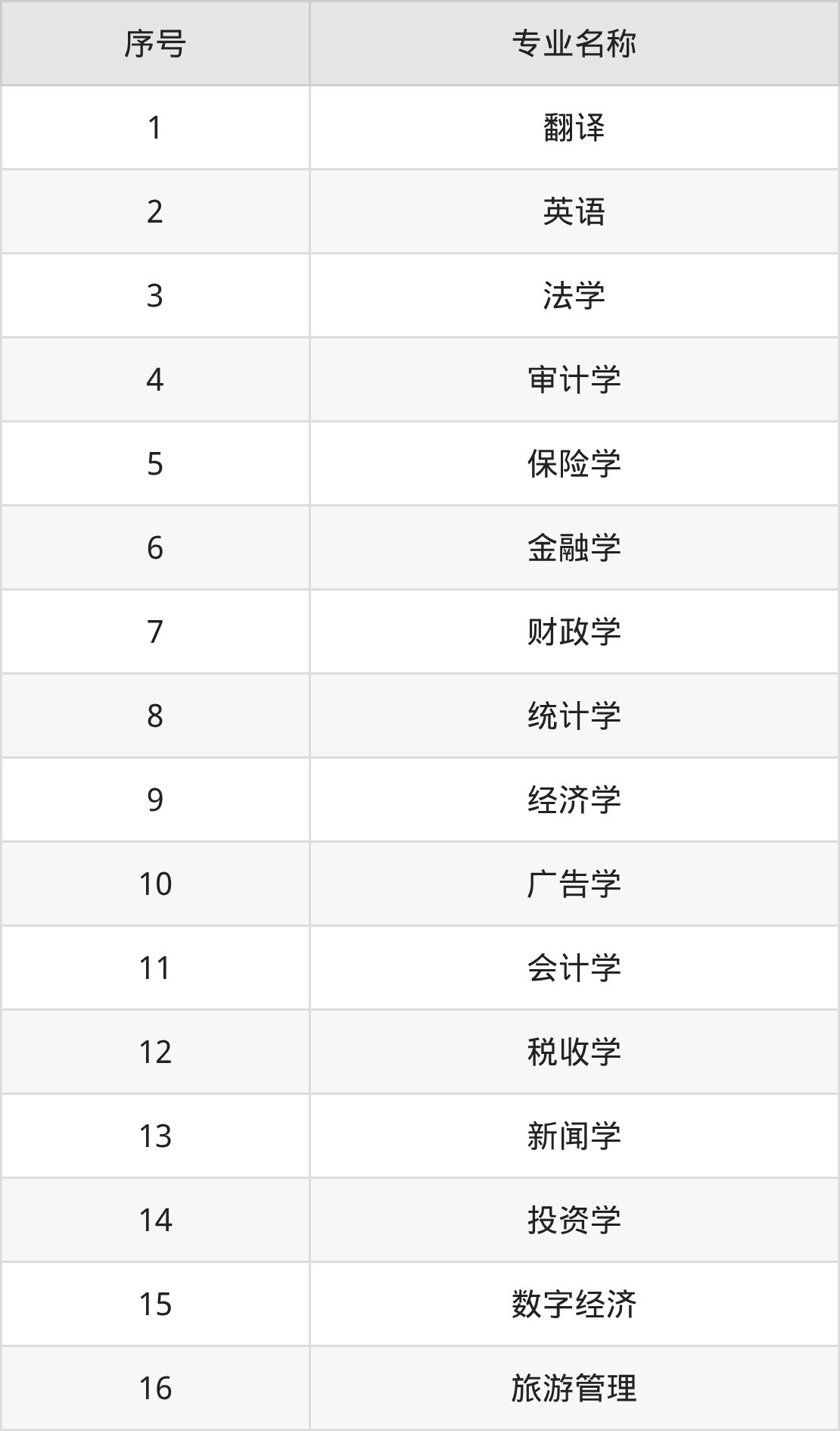 物理类(理科)本科招生专业:英语、法学、翻译、审计学、新闻学、经济学、金融学、广告学、统计学、财政学等。