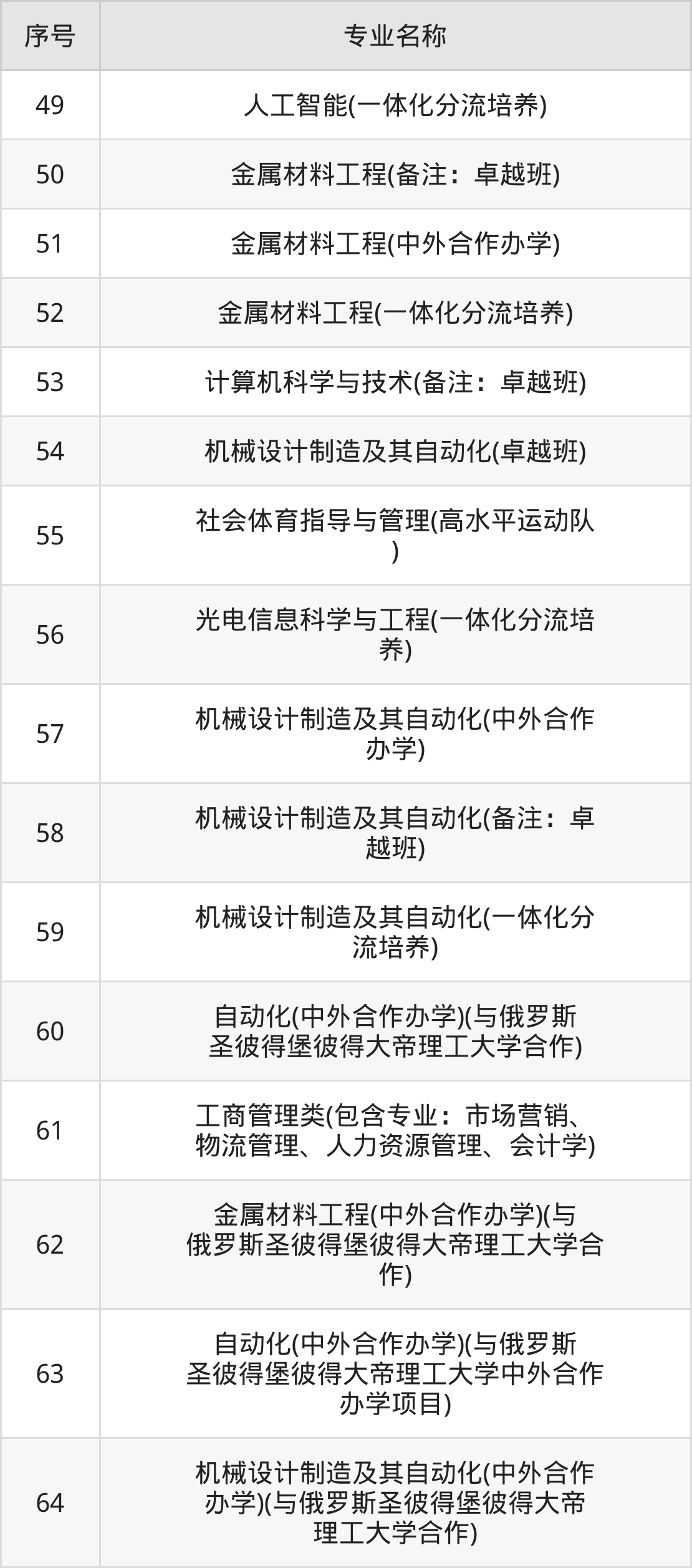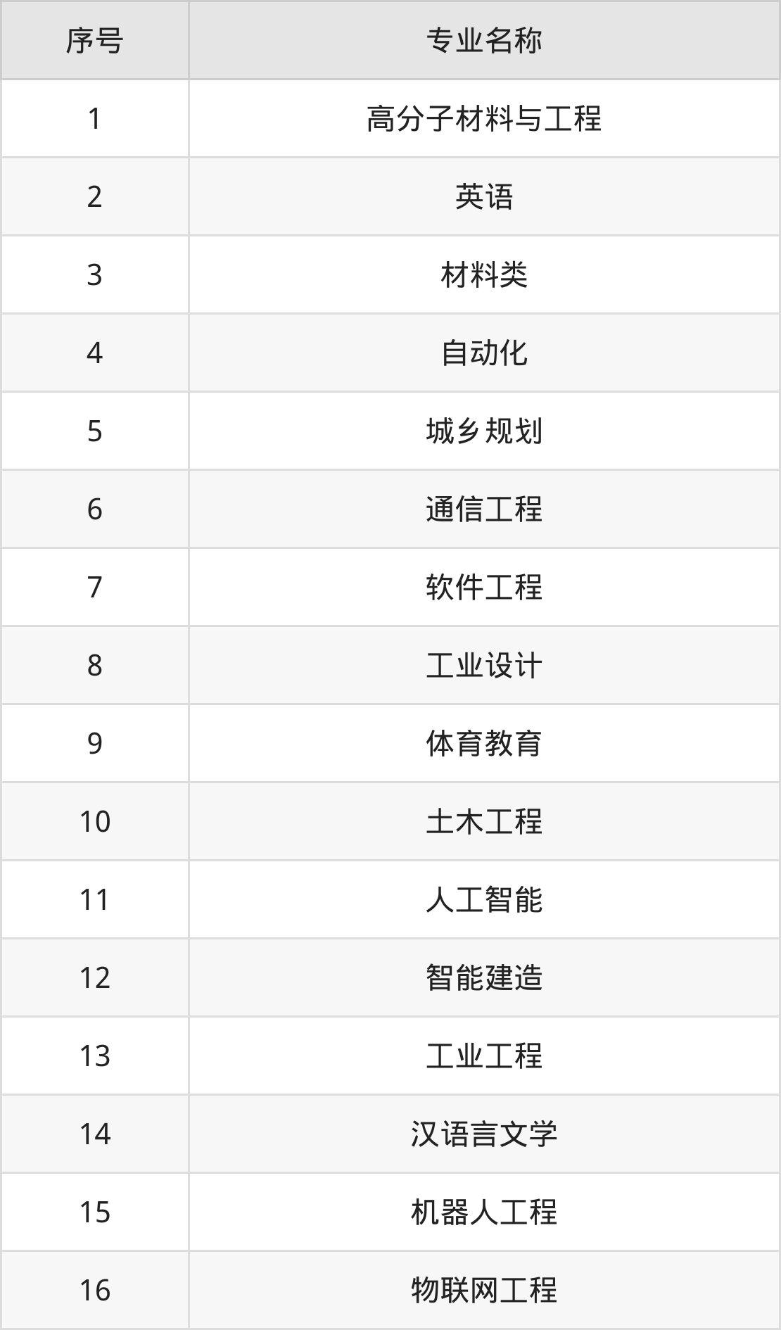 物理类(理科)本科招生专业:高分子材料与工程、英语、材料类、自动化、城乡规划、通信工程、体育教育、土木工程、工业设计、软件工程等。