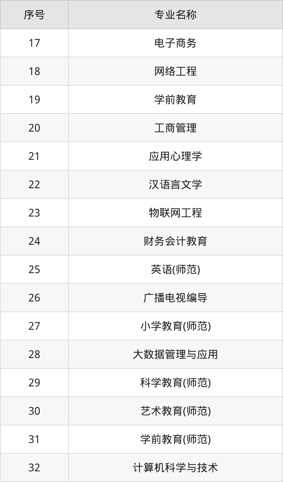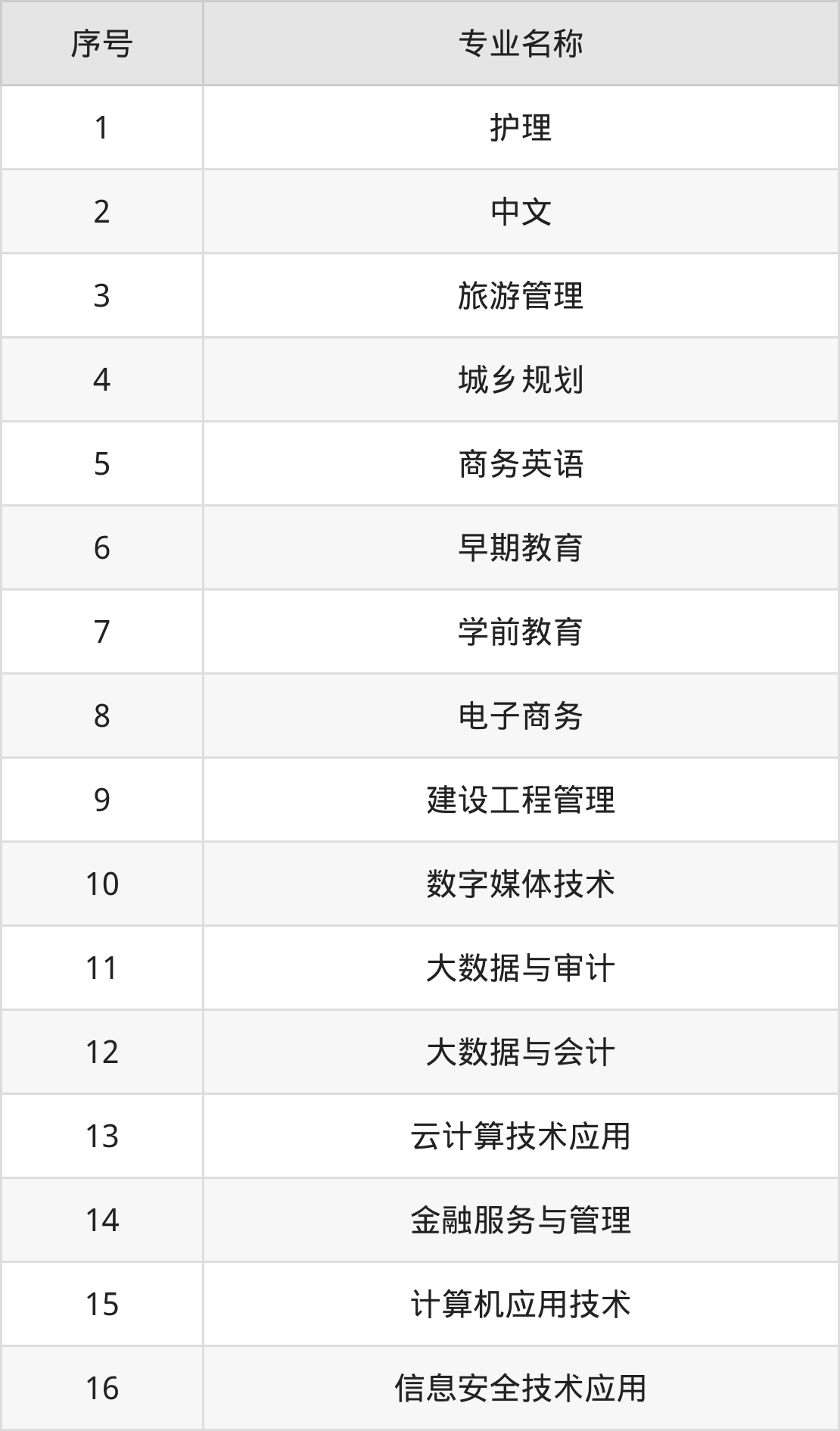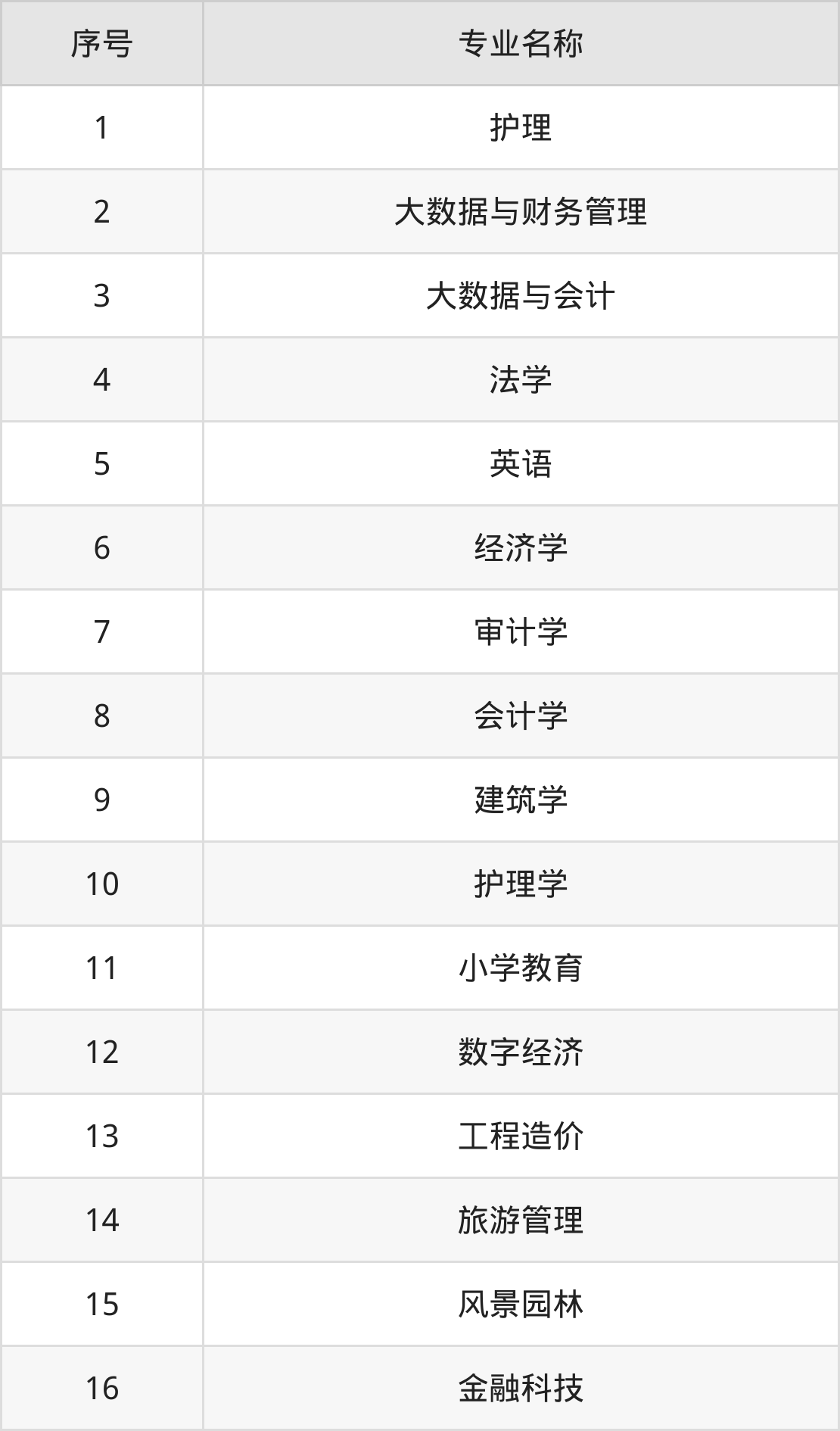 历史类(文科)本科招生专业:法学、英语、经济学、建筑学、会计学、护理学、审计学、小学教育、电子商务、数字经济等。